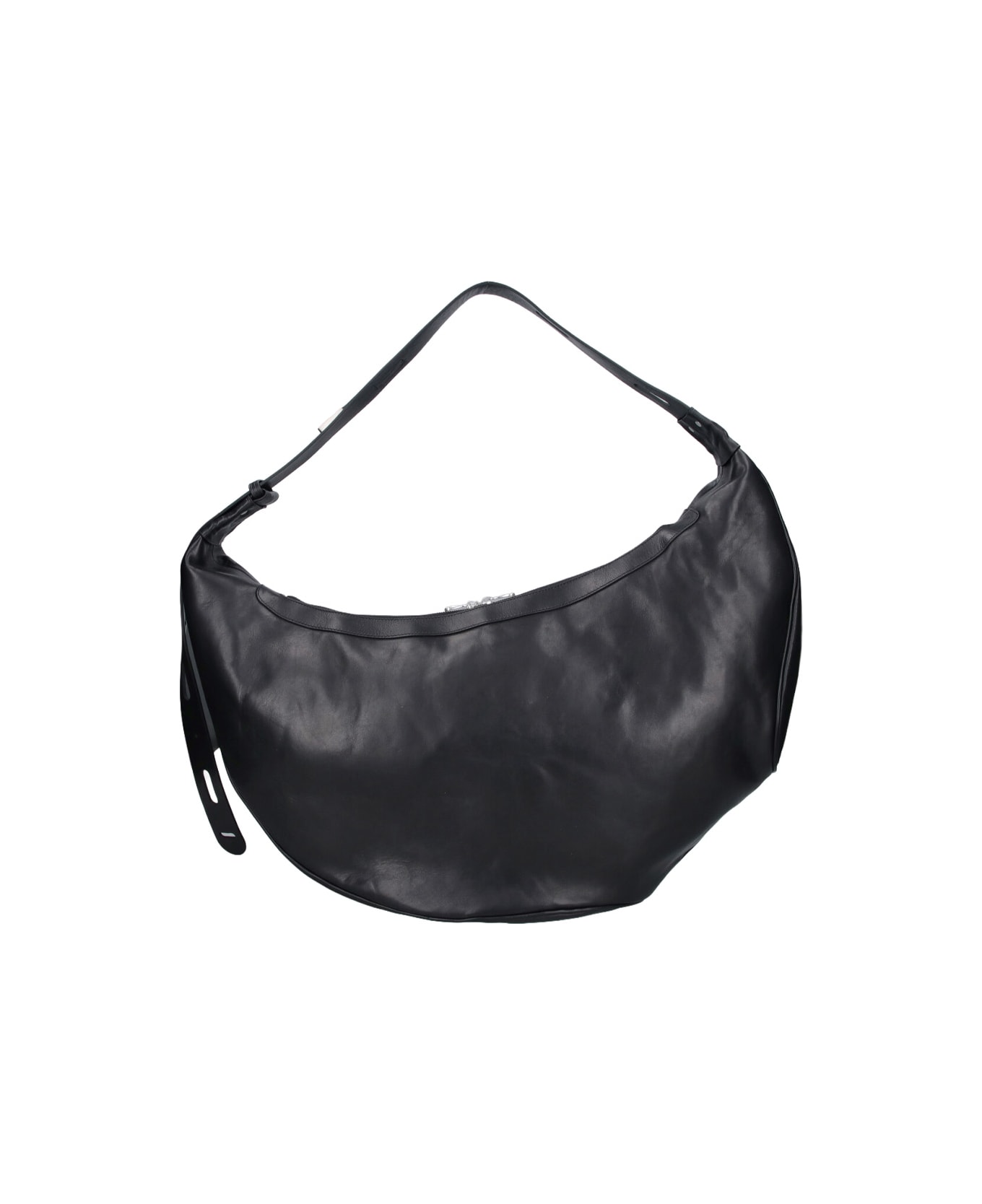 Black calf leather Moravia shoulder bag Kiko Kostadinov, top handle, double zip closure, inner zip pocket, main inner compartment.