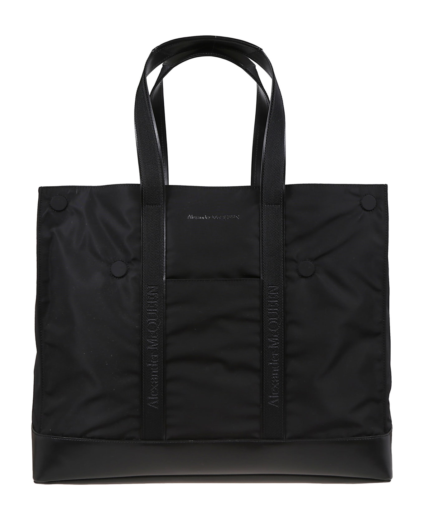 Nylon bag BY ALEXANDER MCQUEEN. Upper fabric handles and leather inserts.
