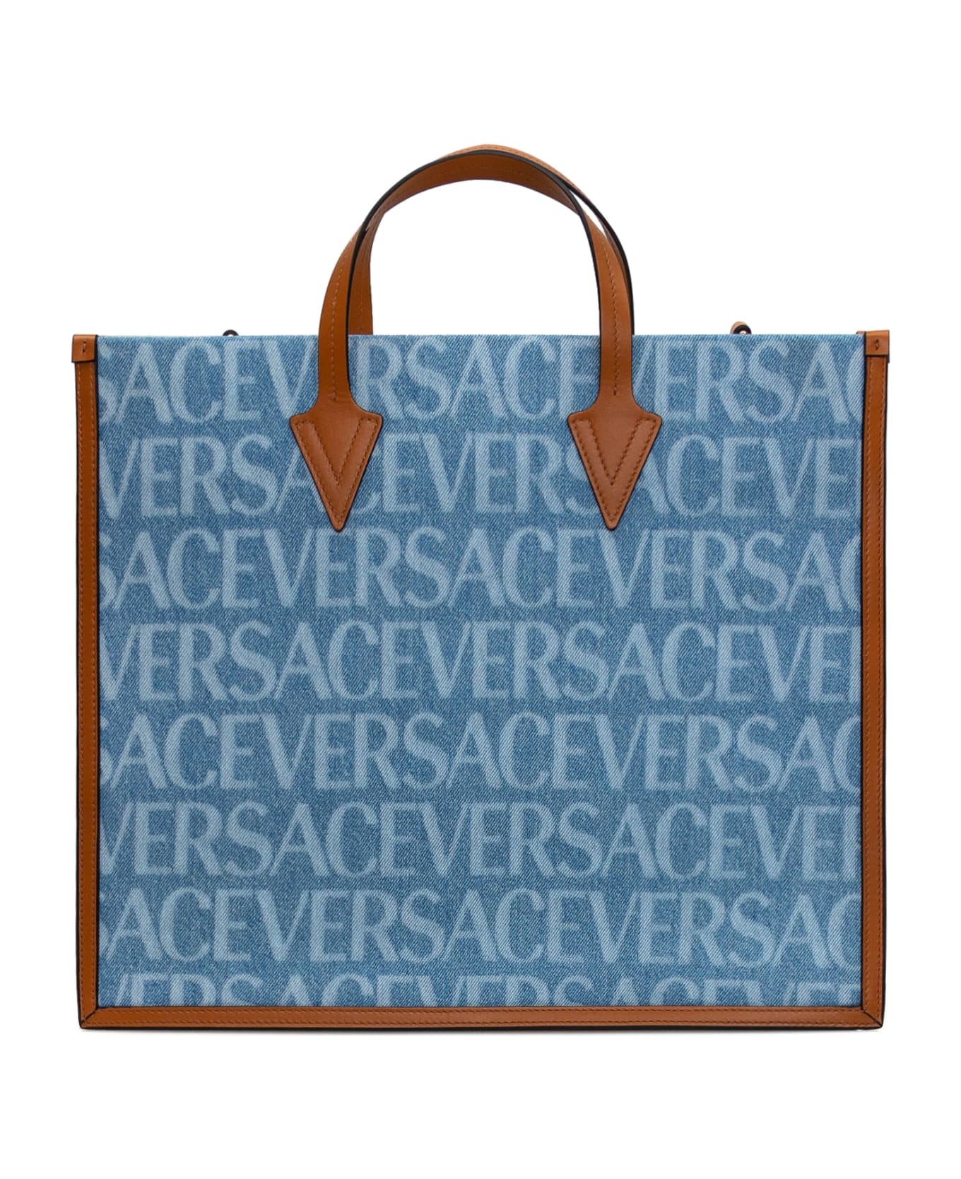 Blue denim shopper bag. Two handles. Adjustable and removable shoulder strap. Inner zip pocket. Logo printed on the front. Barocco printed on the back. Composition: Outside:, 100% Cotton Finishing:, 100% Calfskin