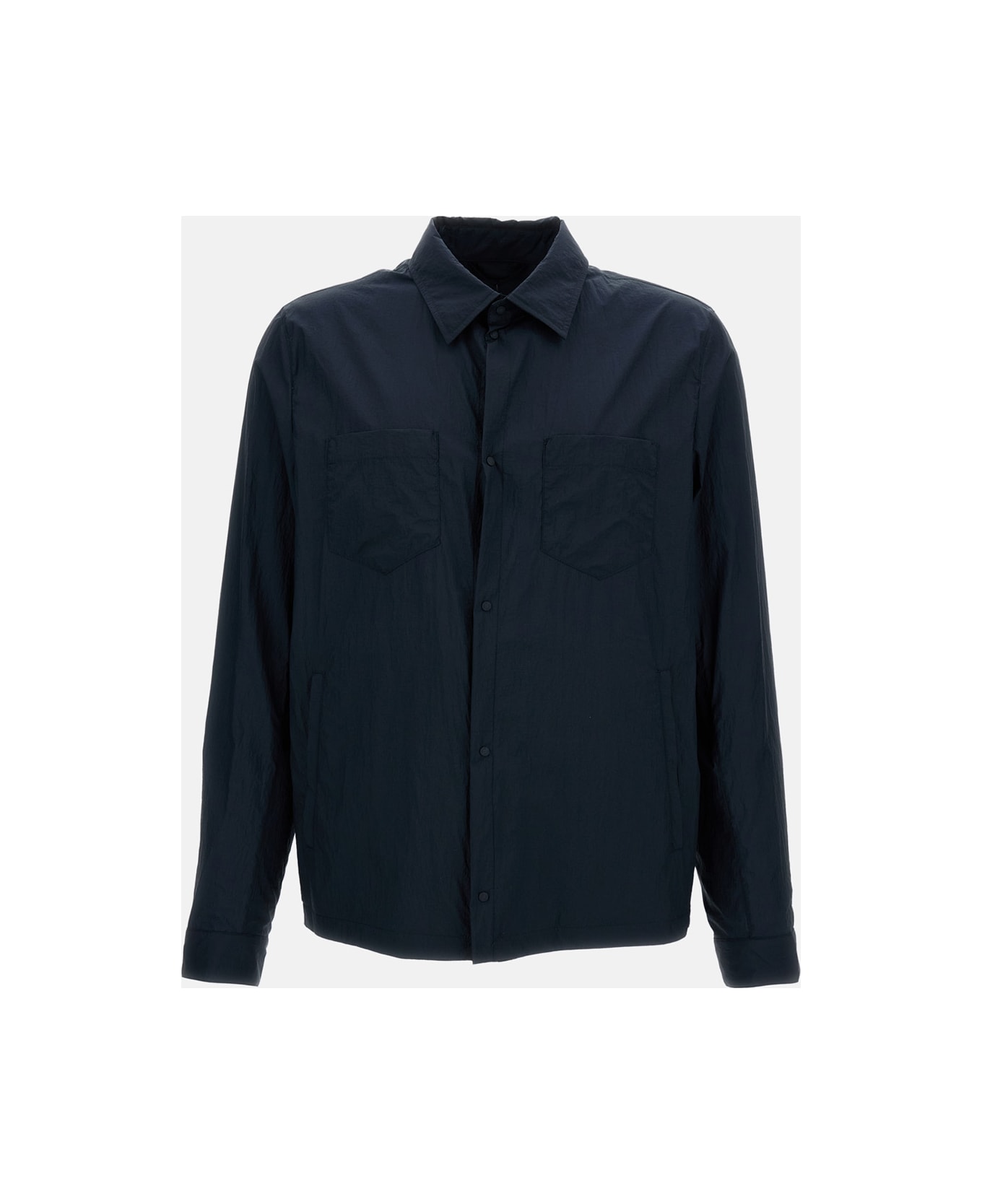 Lightweight technical fabric overshirt Unlined Full-length front snap-button fastening Patch pockets at the chest Regular fit Side seam pockets Color: Blue Made in Italy Composition: 100% Polyamide