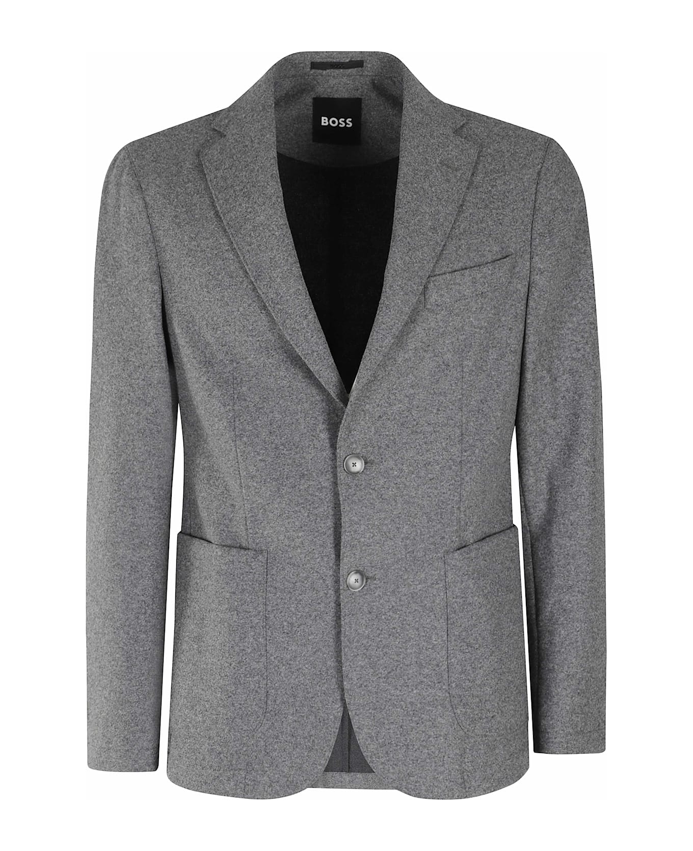 Hanry jacket - Boss - Gray color - Flannel fabric - Lapel neckline - Patch side pockets - Single breasted button closure