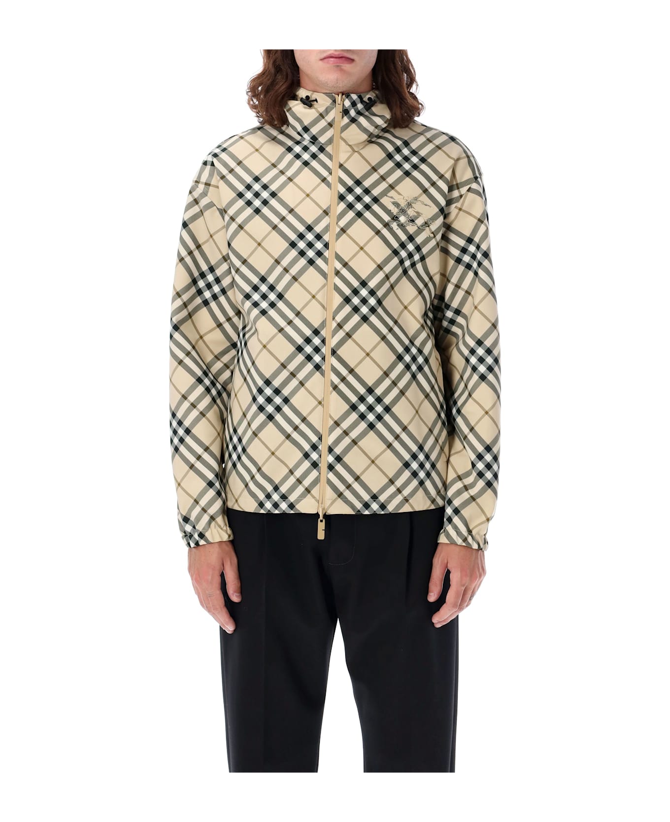 Reversible Check Lightweight Jacket By Burberry London. Featuring: Regular Fit Reversible With Solid Beige And Vintage Check Sides High Collar With Full Front Zip Closure Long Sleeves With Elastic Cuffs Two Side Pockets On Both Sides Embroidered Burberry Equestrian Knight Logo On Chest Model Is 1,90m And Wears Size M.