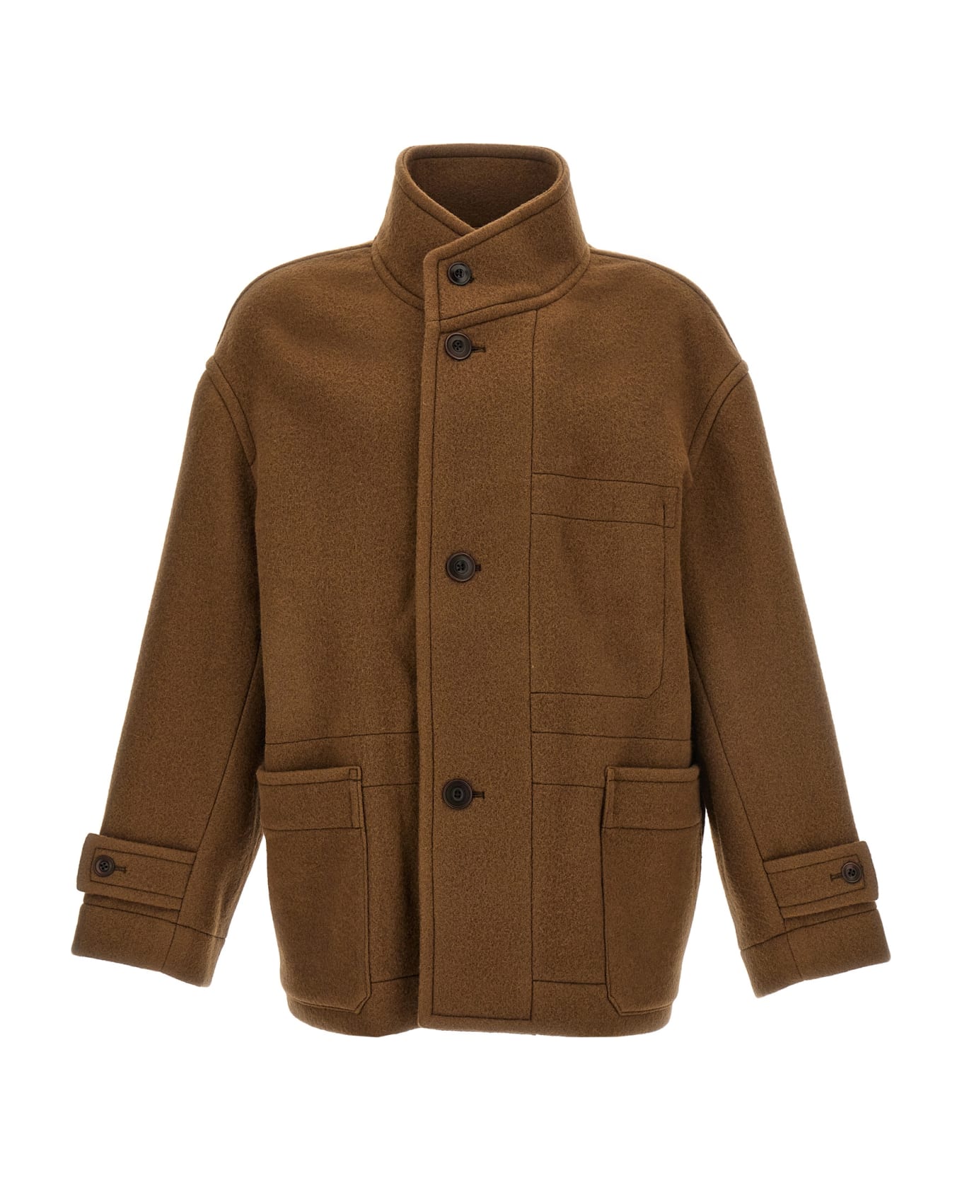 Boxy Duffle coat in wool with button closure, pockets, and long sleeves.