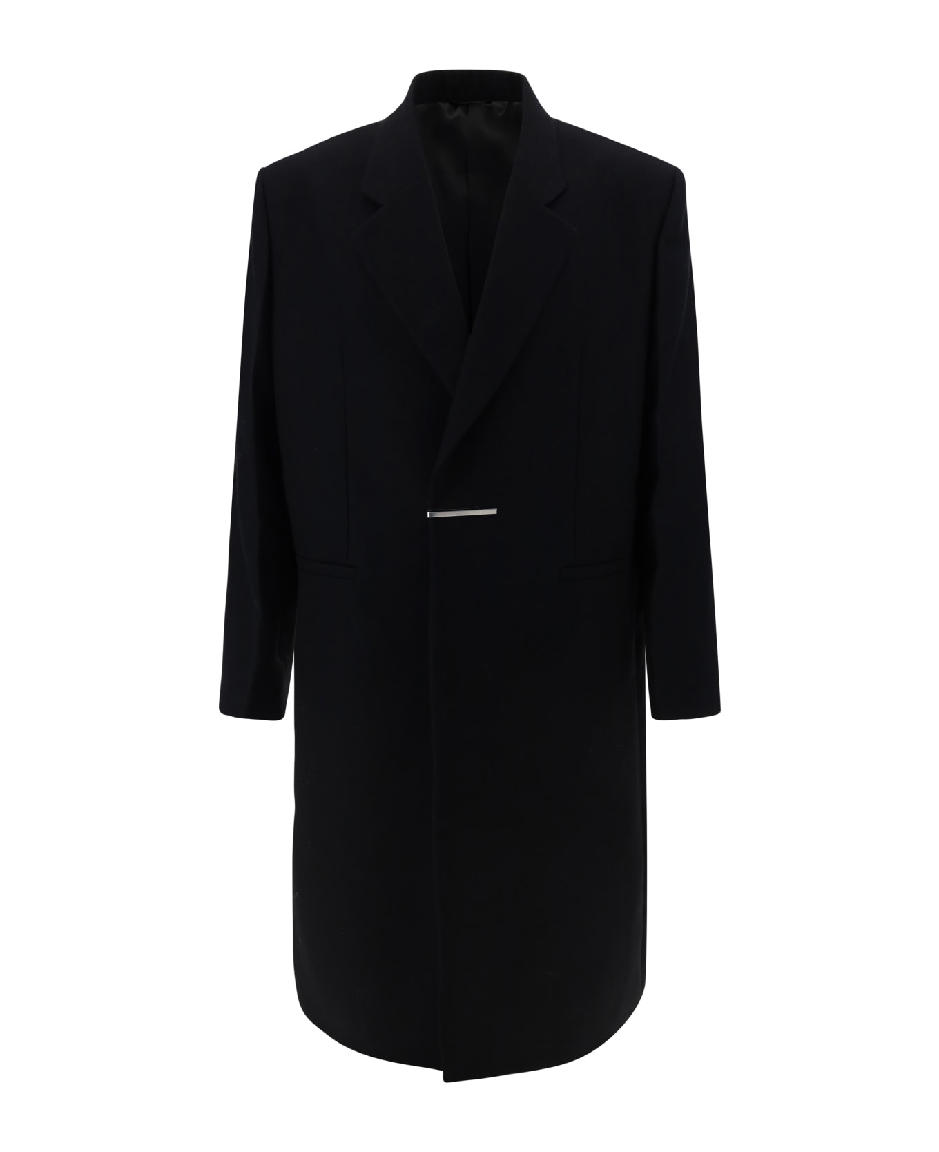 Wool coat by givenchy, wide classic lapels, front closure by logoed hook-and-eye, two slit pockets applied to the front, monochrome design, padded and structured shoulders, regular fit. Composition: 100% % Wool