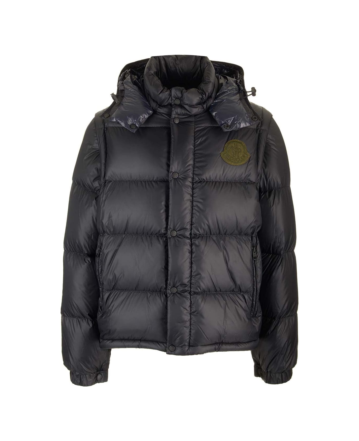 Cyclone model down jacket with detachable sleeves, detachable hood, zip pockets