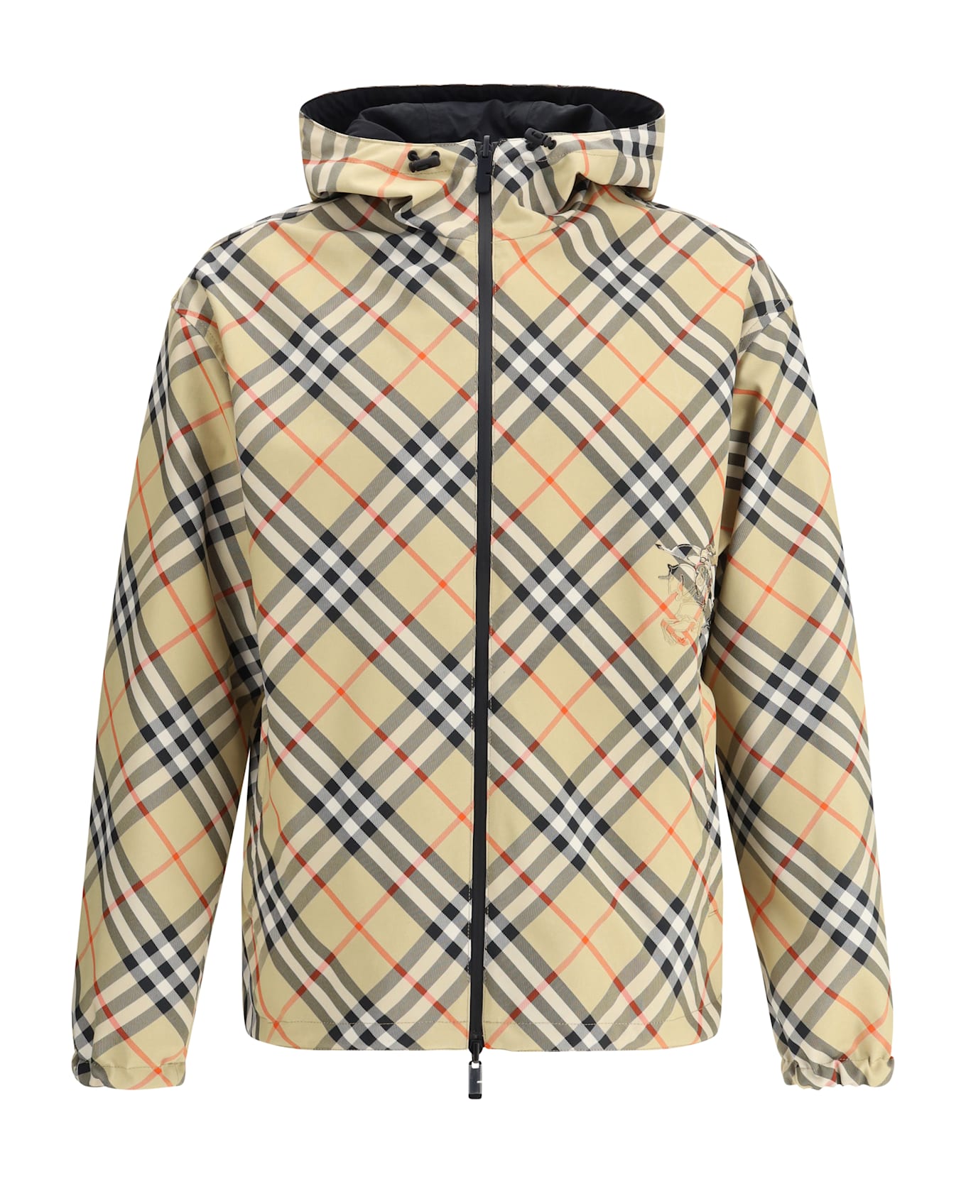 Burberry's reversible waterproof jacket is a versatile and functional garment perfect for any occasion. featuring an adjustable drawstring hood and a front zipper closure, it offers practicality and protection. the two side welt pockets add useful space without compromising design. reversible, it features the iconic archivio check pattern on one side and a monochrome look on the other to easily adapt to different styles and needs. Composition: 100% % Polyester