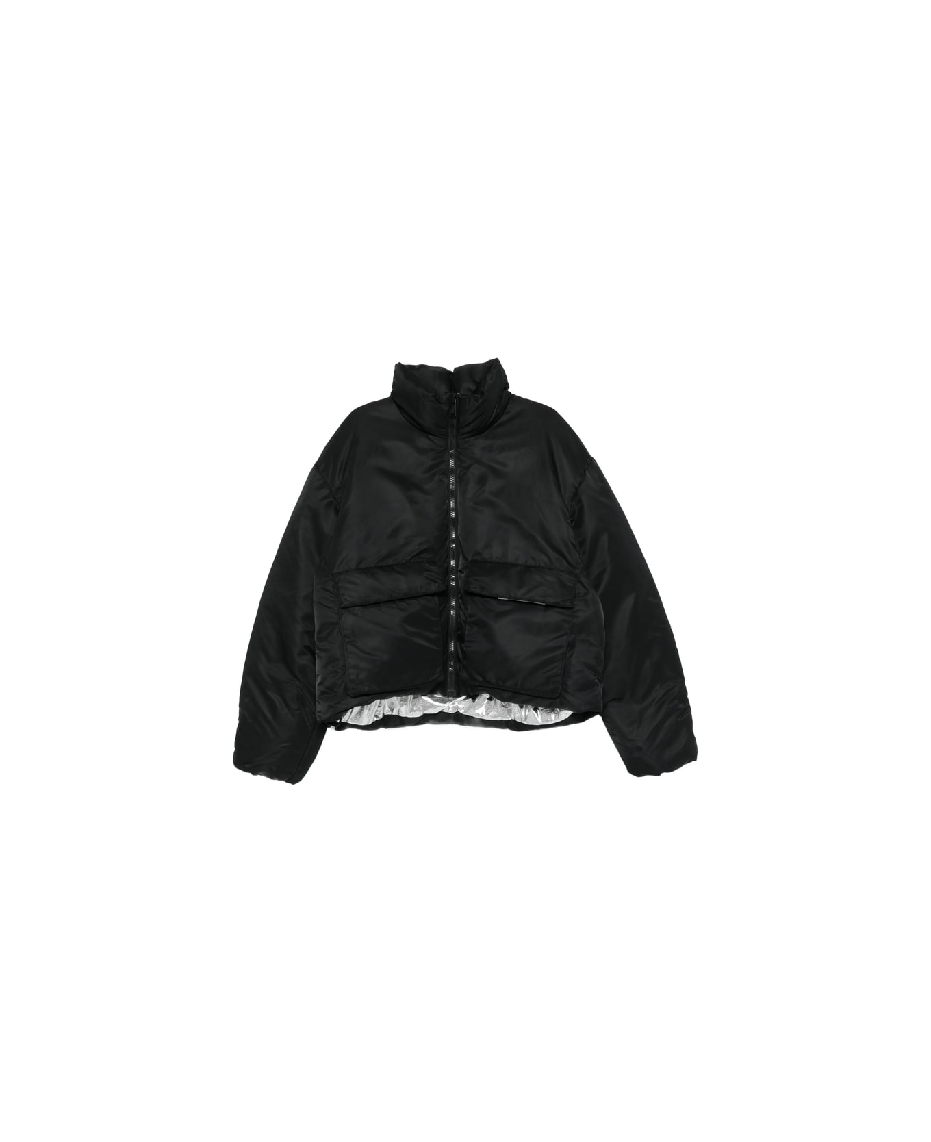 black zip fastening flap pockets high neck quilted design