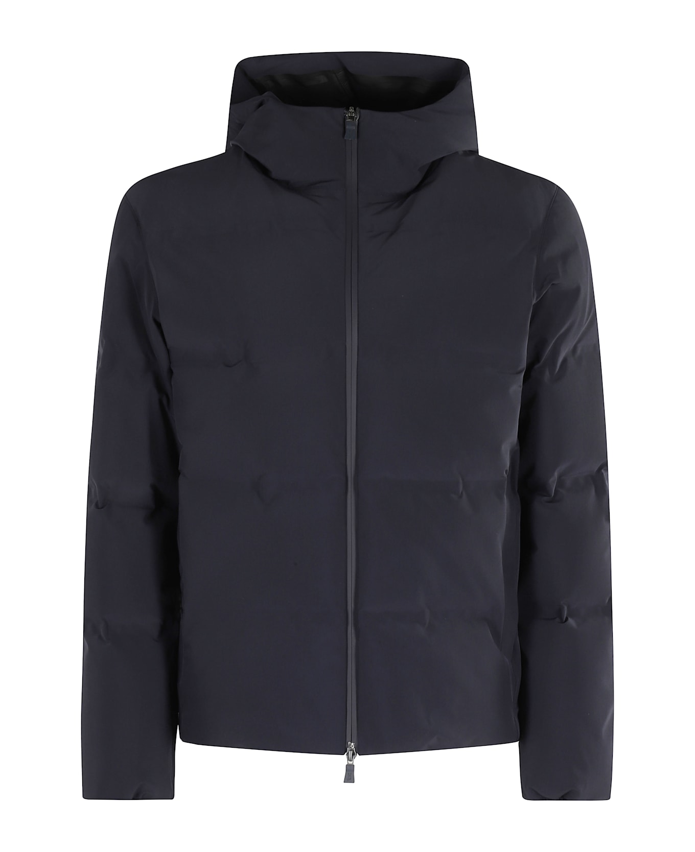 Jacket -Herno -Blue color -Long sleeve -Cap -Side pockets -Double-slider central closure