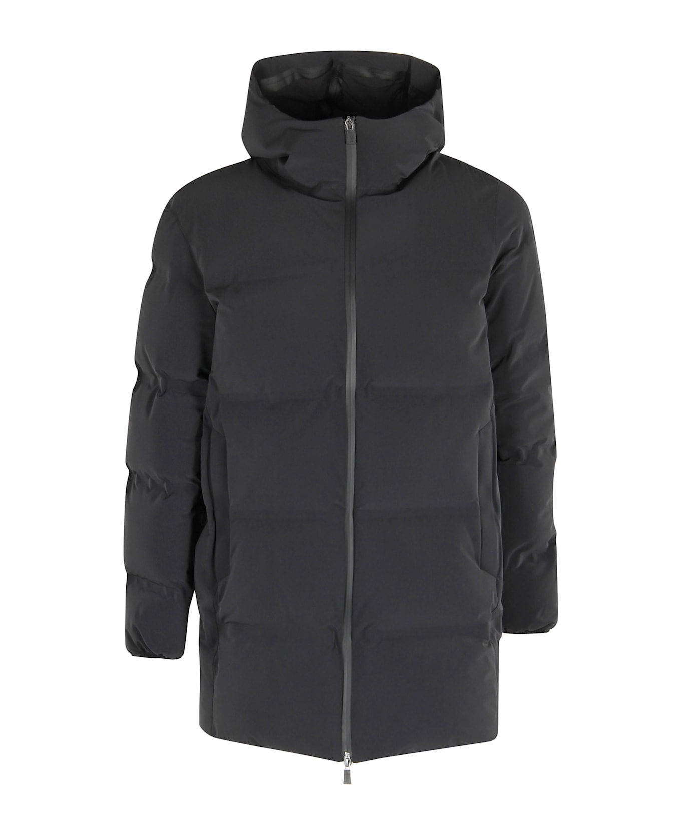 New Impact down jacket - Herno - Black color - Quilted fabric - Long sleeve - Hood - Flush side pockets - Central two-way zipper closure.