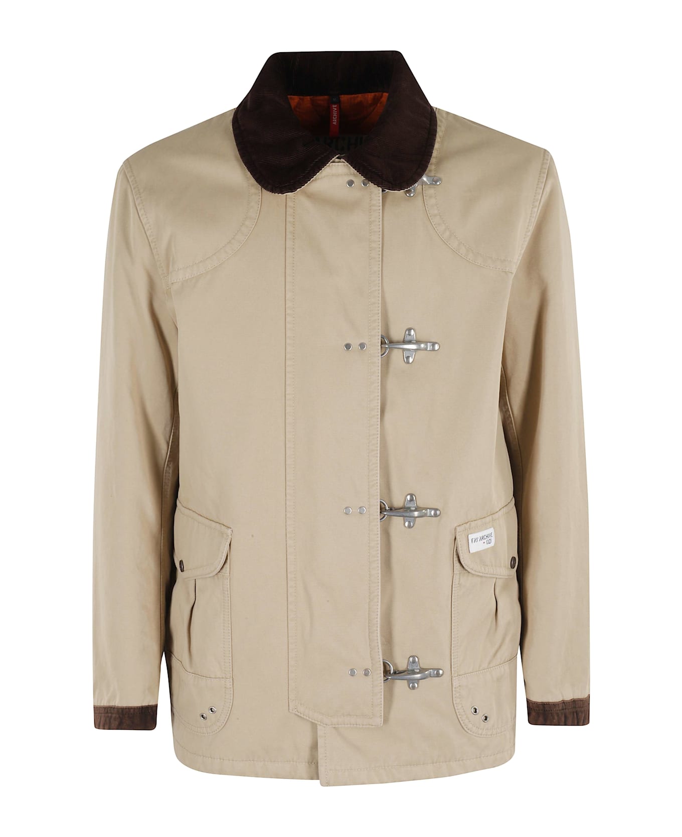 Jacket 4 Hooks Archive -Fay -Sand color -Classic collar -Long sleeve -Front pockets -Central button and hook closure