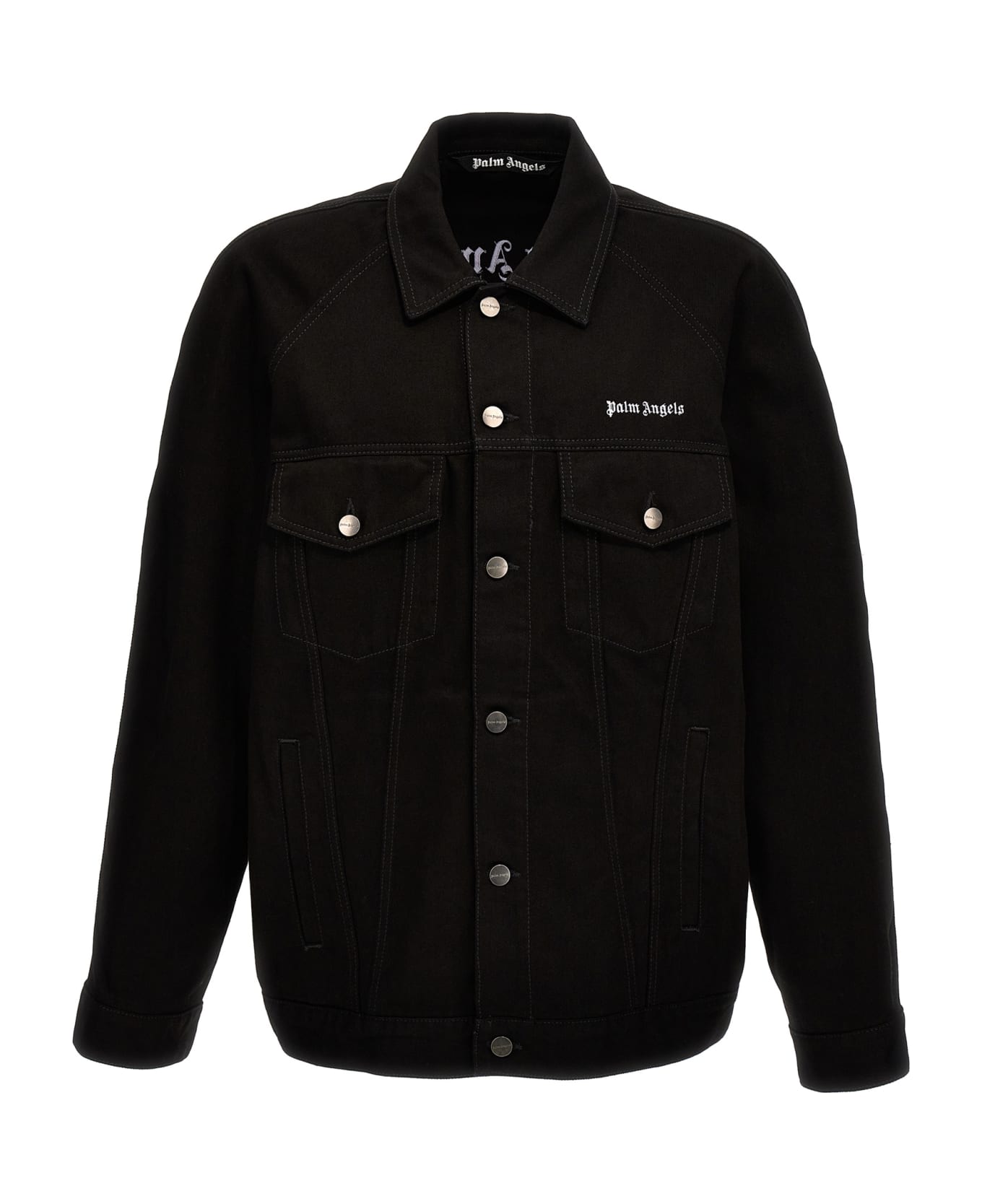 Denim jacket with contrasting logo embroidery on the back, button closure. Composition: 100% cotton