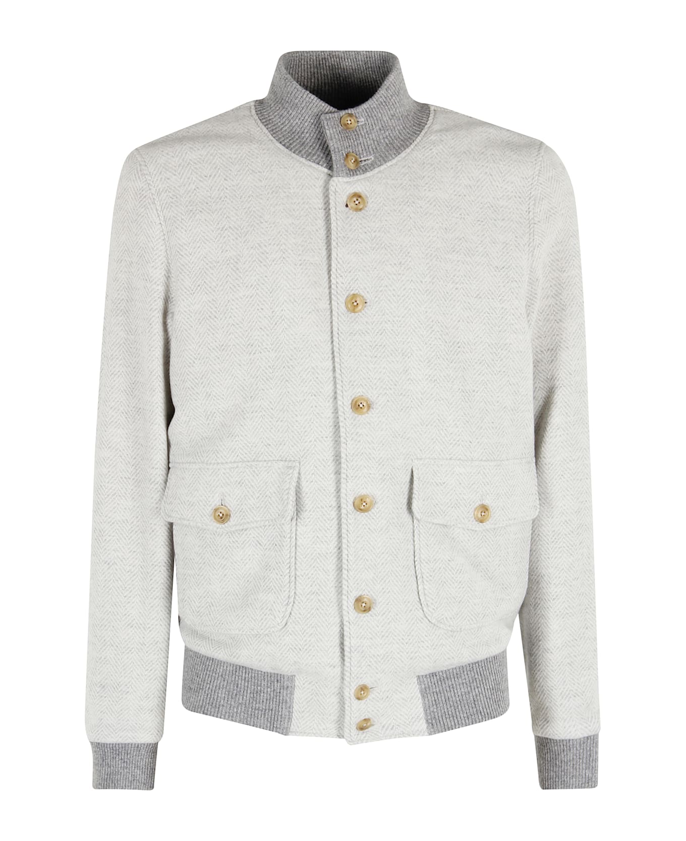 Jacket - L. B. M. - Gray color - Herringbone wool fabric - Ribbed collar - Long sleeve with ribbed cuff - Side pockets with flap and button - Front button closure