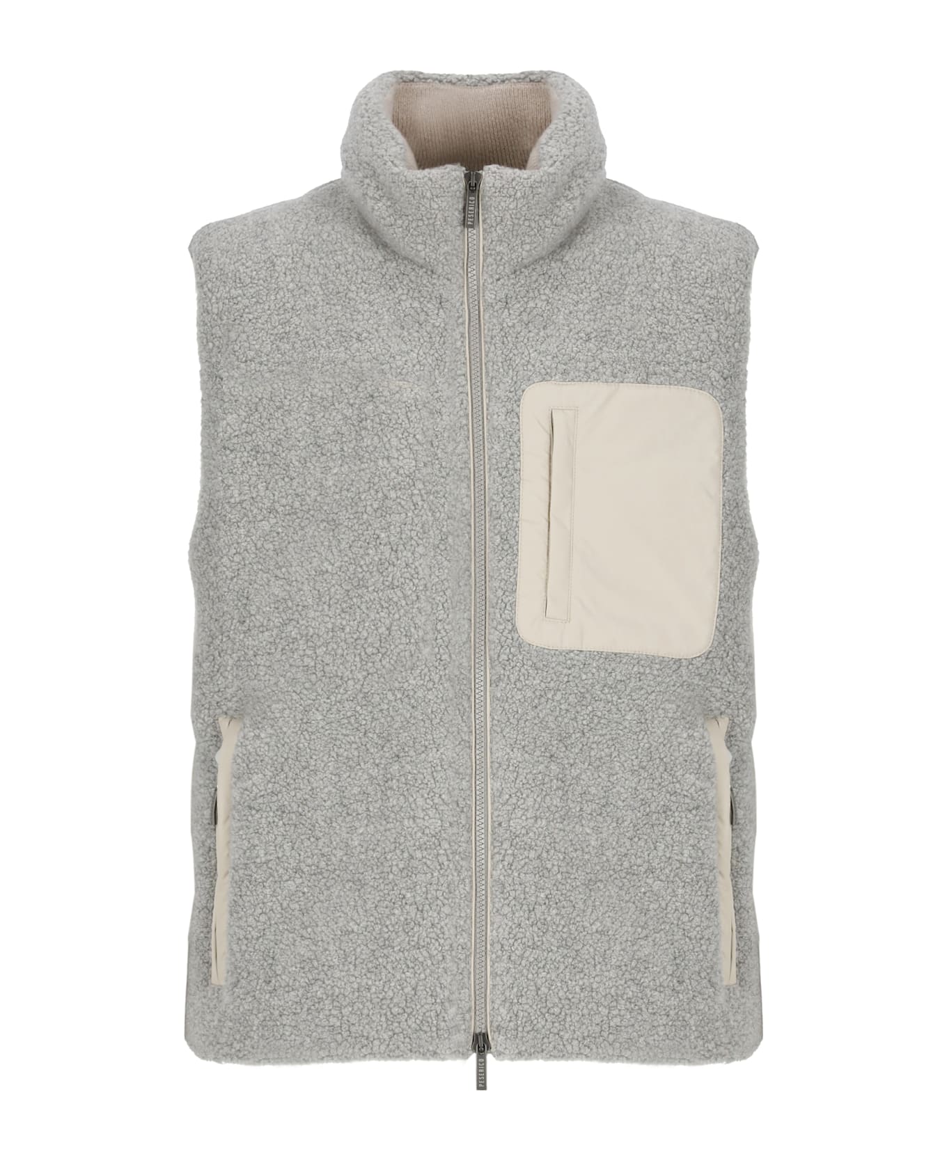 - Grey Peserico virgin wool vest for man - High neck - Sleeveless - Three front zip pockets - Front zip fastening Composition: 70% Virgin Wool, 18% Polyamide, 12% Polyester