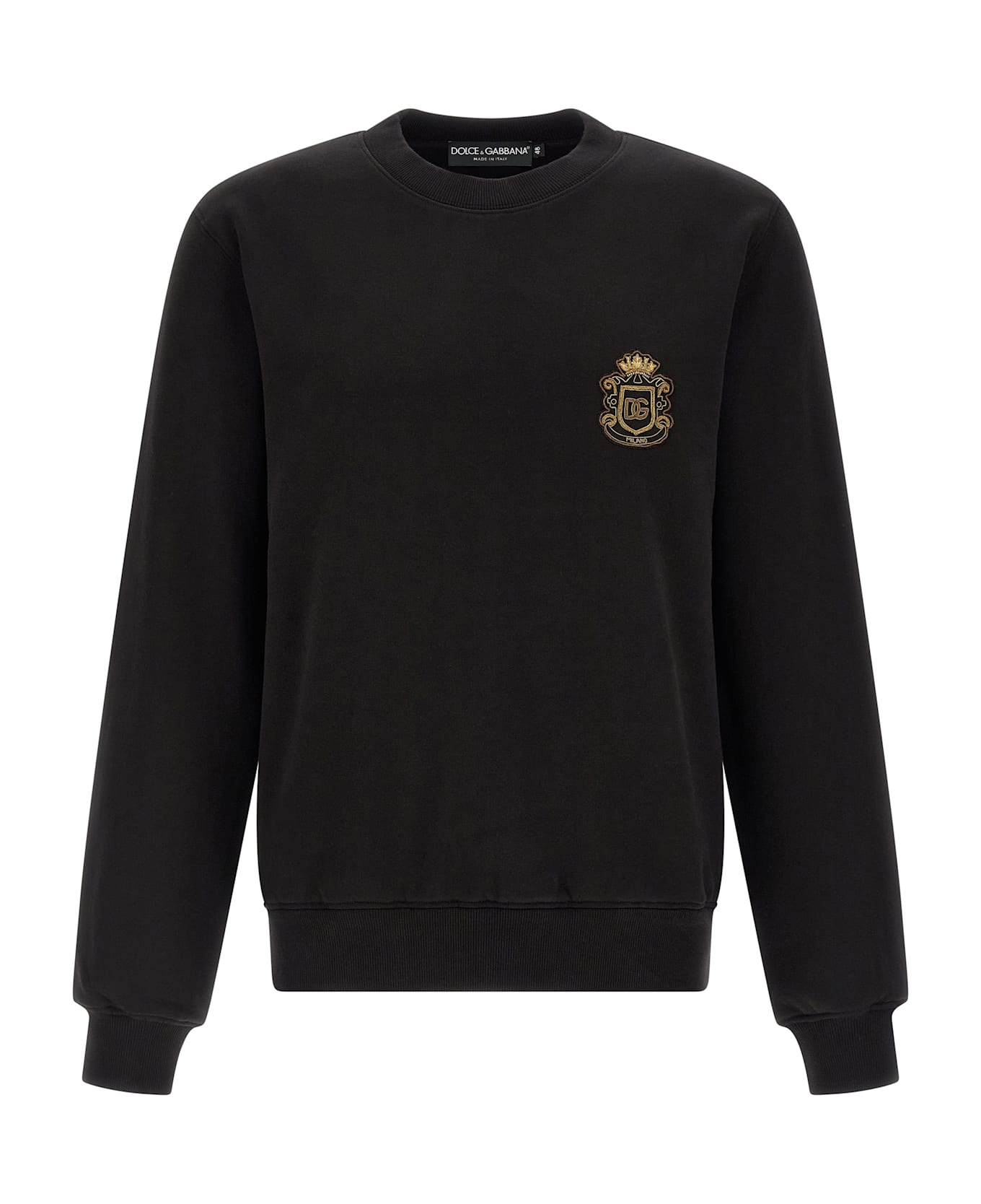 Brushed cotton sweatshirt, front heraldic patch, crew neck, long sleeves with cuffs and dropped shoulders, band on the hem.
