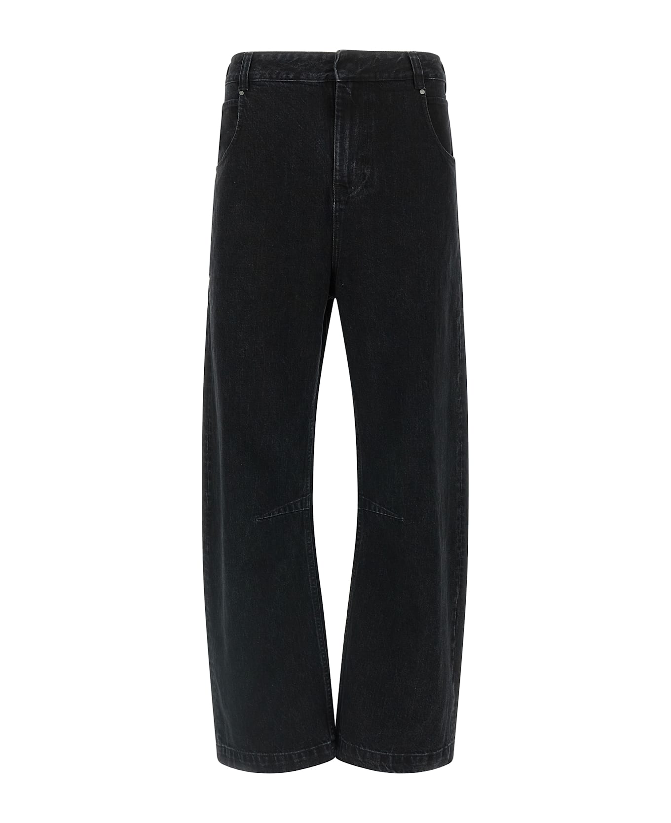 Gem' garment-dyed 13. 75 oz Japanese cotton denim jeans, front zip and button closure, five pockets, wide straight leg, knee pin, back logo tag. Composition: 100% cotton