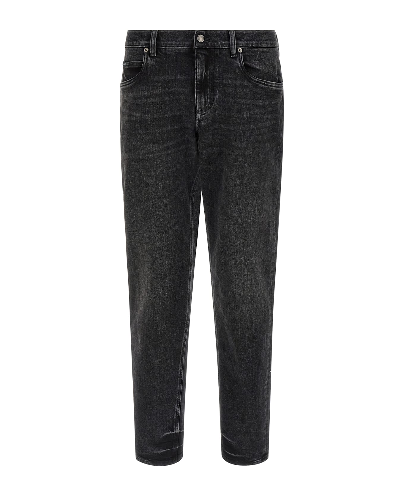 Stone-washed garment-dyed cotton denim jeans with low waist, straight leg, front zip and button closure, five pockets, leather DG logo patch on the back. Composition: 99% cotton, 1% elastane