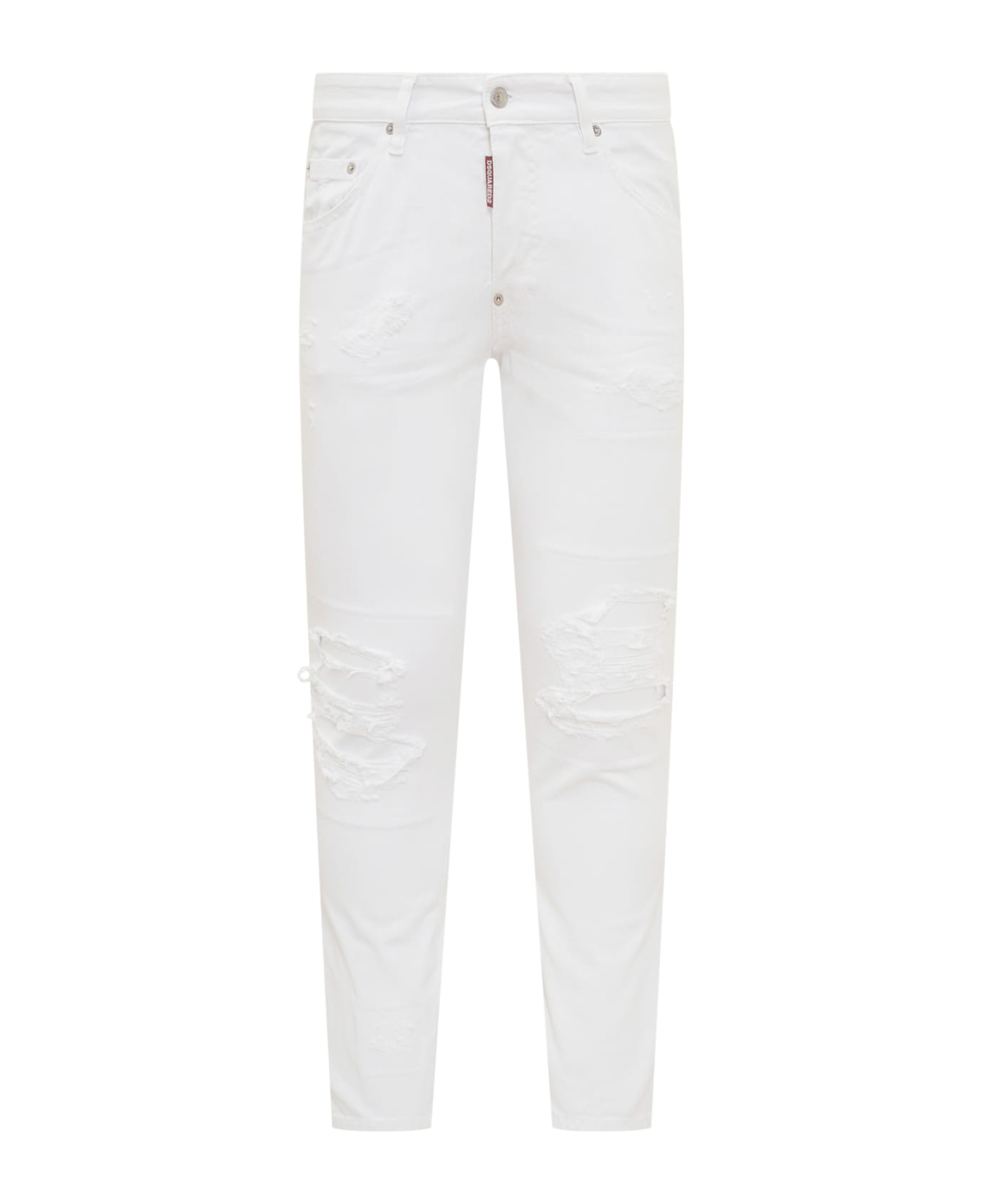 White slim jeans. Button closure. Belt loops. 5 pockets. Ripped on the front. Label logo on the waist.