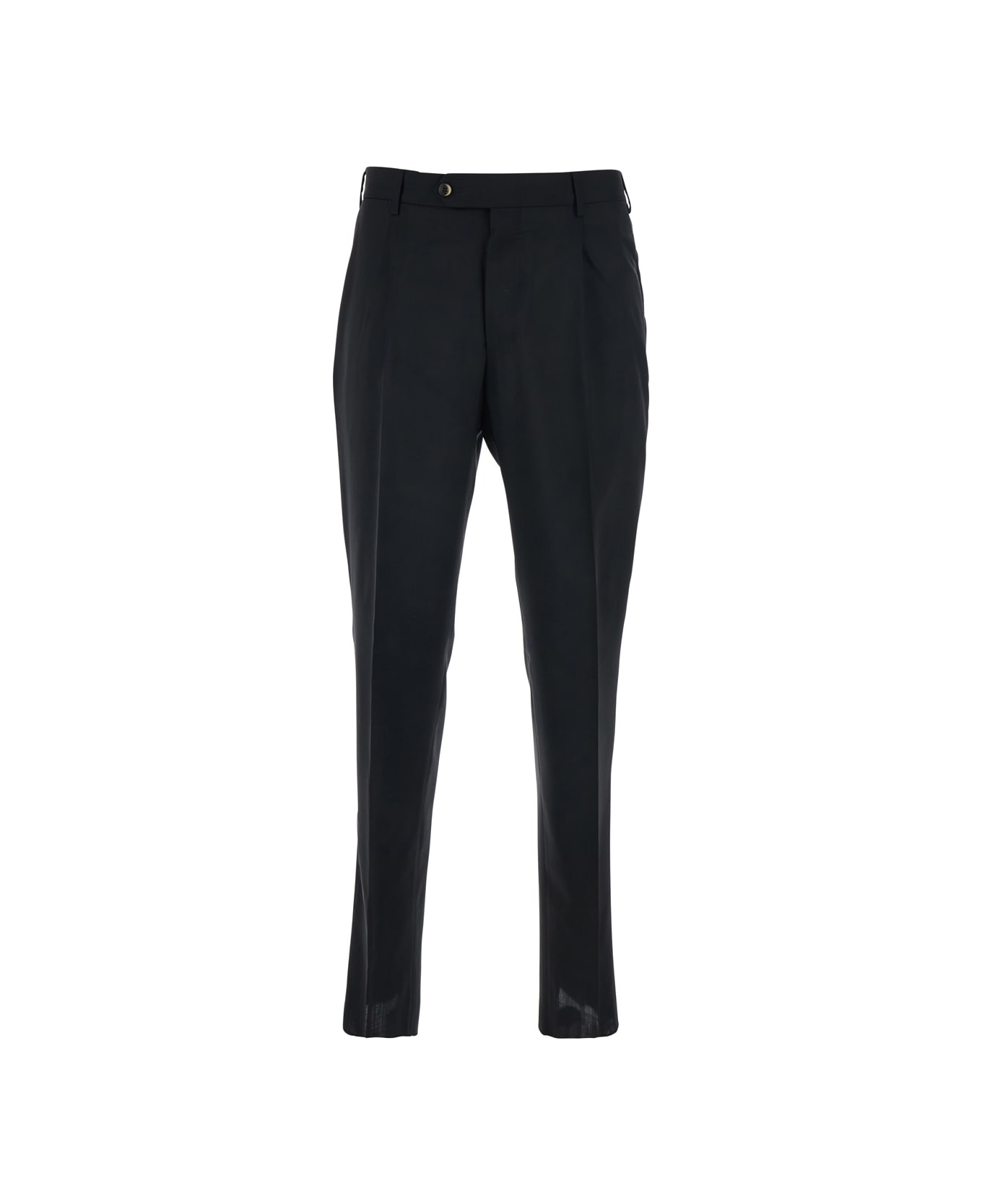 Pants Black Belt loops Hidden front closure Two side pockets Front pleats Two back welt pockets Wool Slim fit