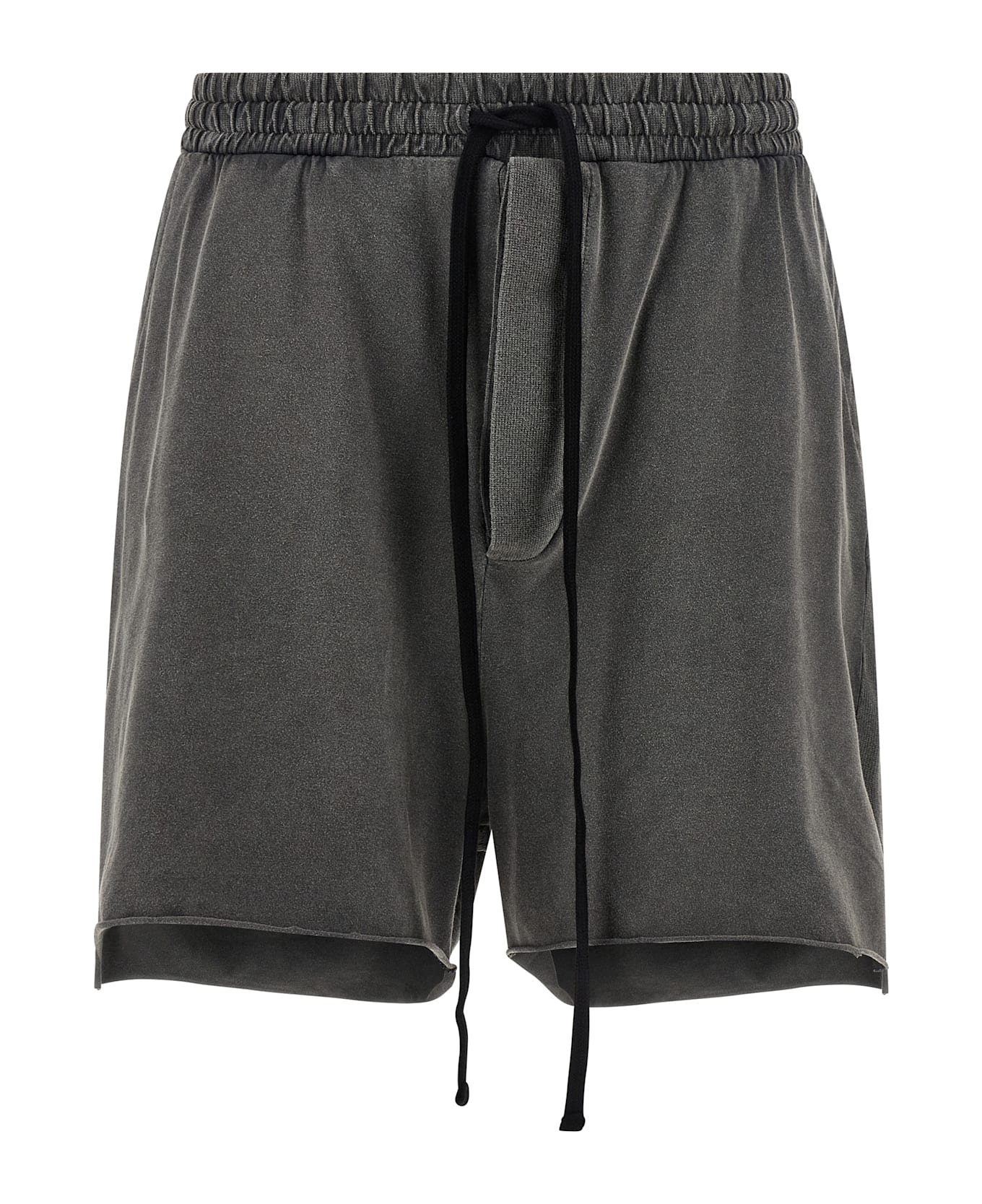 513' used effect stretch cotton jersey bermuda shorts with tone-on-tone structured cotton jersey inserts, drawstring elastic waistband, button flap, pockets, side slits at the hem, asymmetric leg hem.