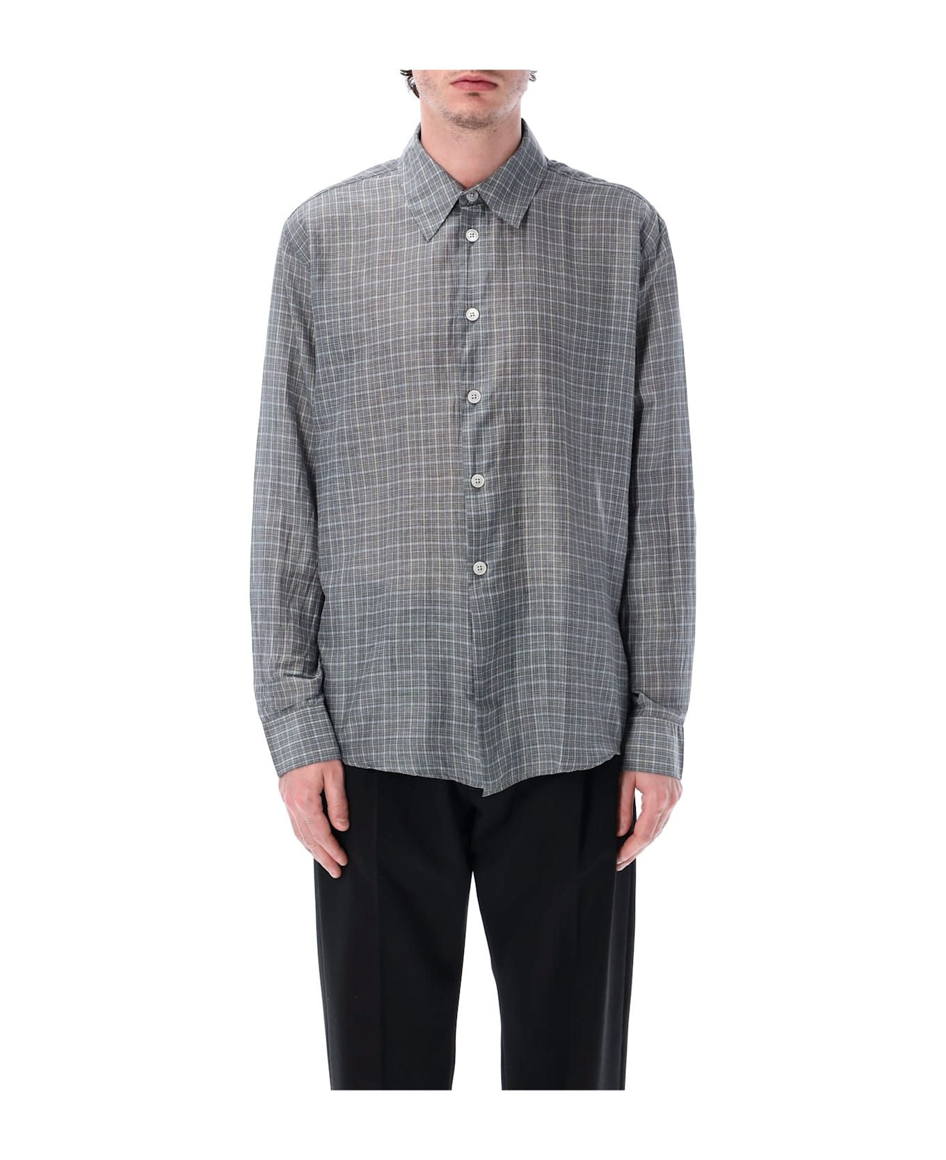 Cotton And Silk Blend Beyond Shirt By Our Legacy. Featuring: Point Collar Front Button Closure Long Sleeves Button Cuffs Delicate, Sheer Check Pattern Curved Hem Straight Body Regular Fit Model Is 1,90 M And Wears Size 50