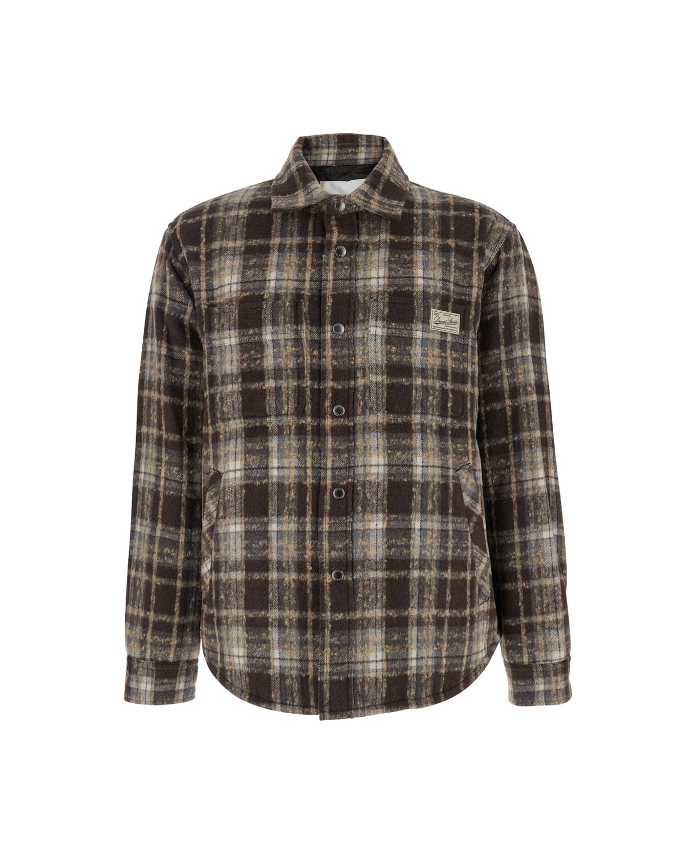 Brown Checkered Shirt With Front Logo Patch In Flannel Man