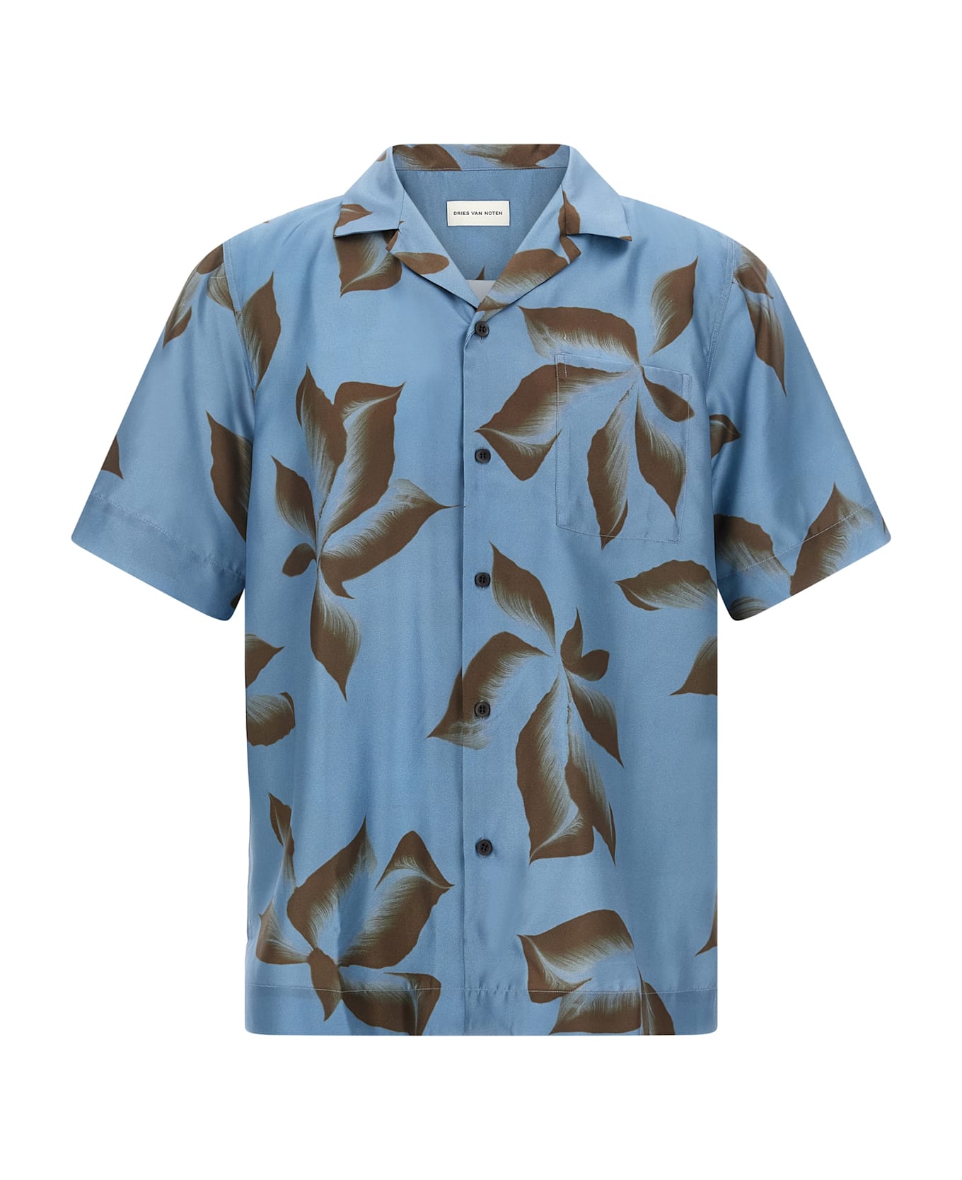 'Carltone' silk shirt with floral print, breast pocket, button closure, short sleeves, side slits.