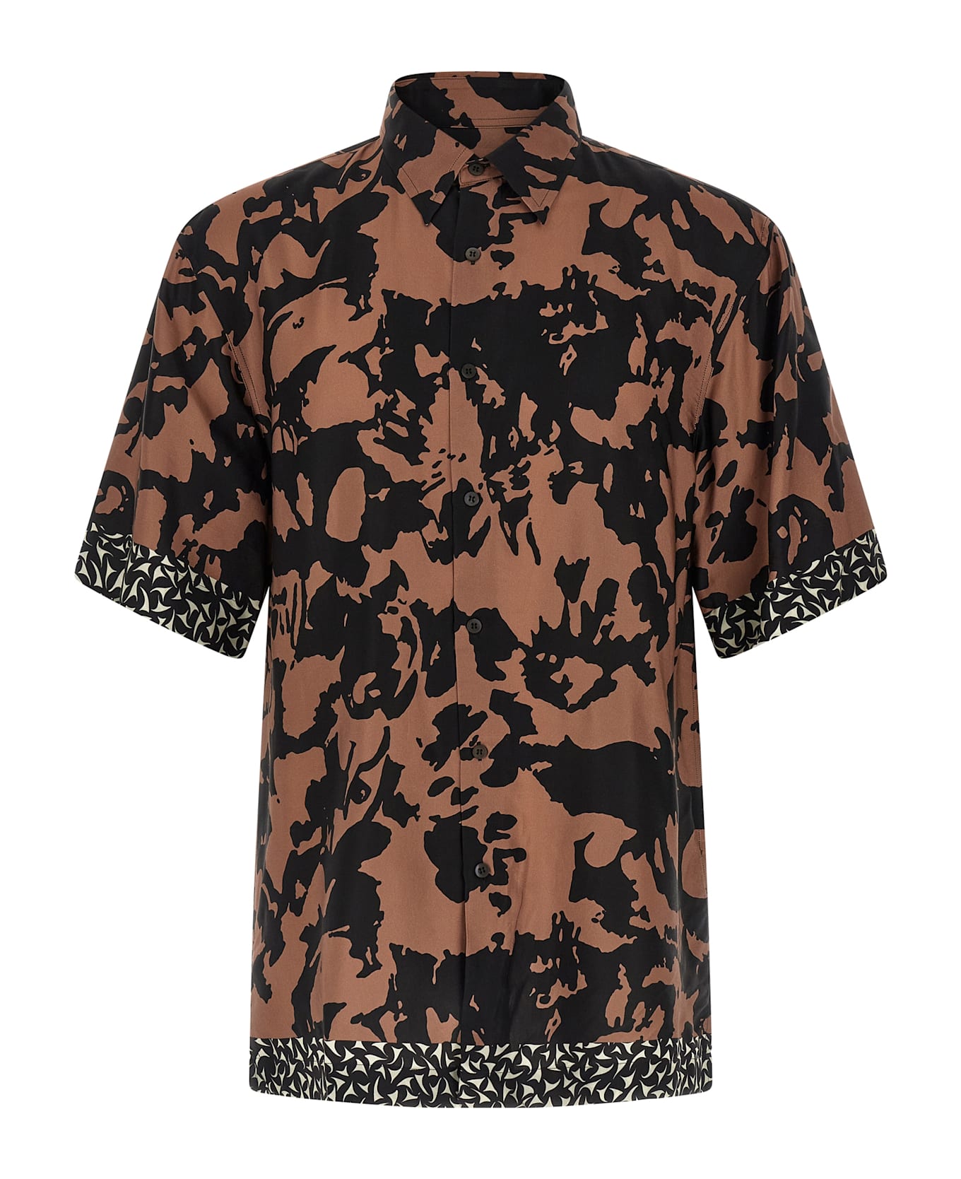 'Cassidye' floral print viscose shirt, pointed collar, front button closure, short sleeves, side slits.