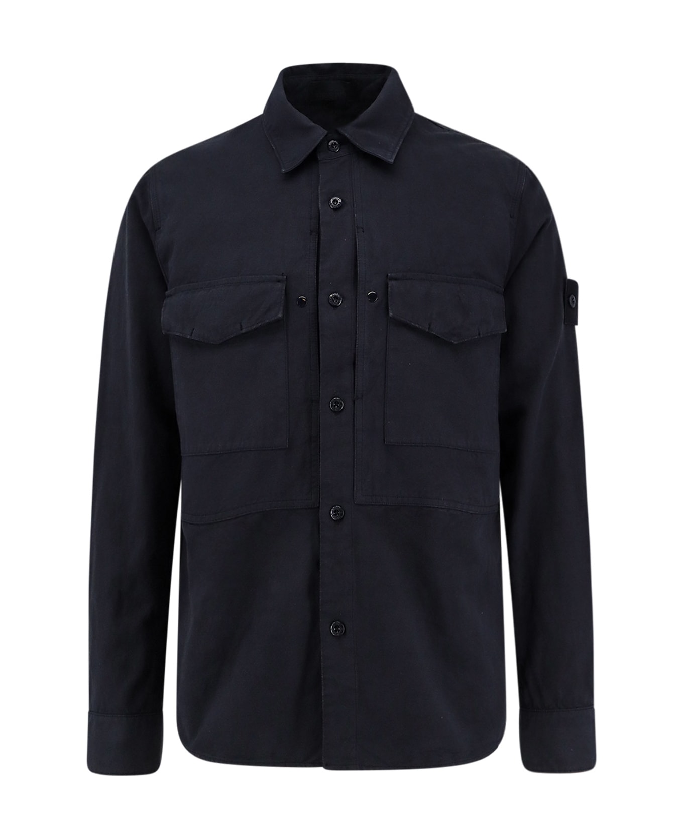 Button closure Flap pockets with buttons Long sleeves with buttoned cuffs Logo patch on the left sleeve 74% cotton 26% linen SKU: L1S151200012S0F36V0020