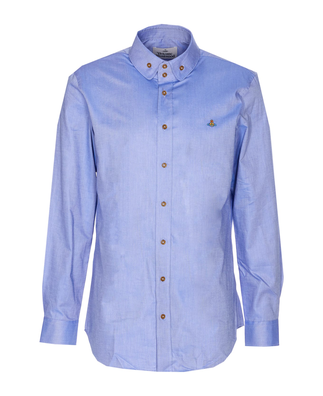 Vivienne Westwood light blue Orb Logo shirt, classic collar, buttons closure, embroidered orb logo on front Composition: 100% Cotton