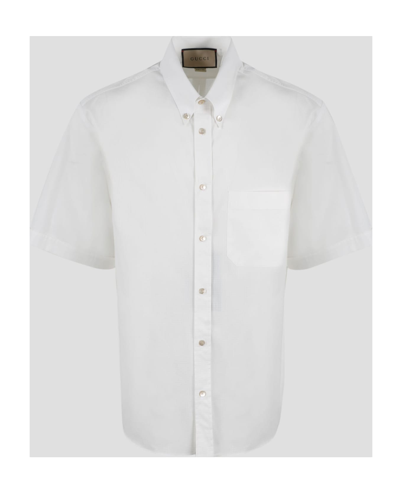 Gucci cotton polyester ripstop shirt. - SS23 - Regular fit - Button-down collar - Button closure - Patch pocket on the chest - Embroidered label on the back - Short sleeve - Made in Italy - 61% Cotton, 39% Polyester