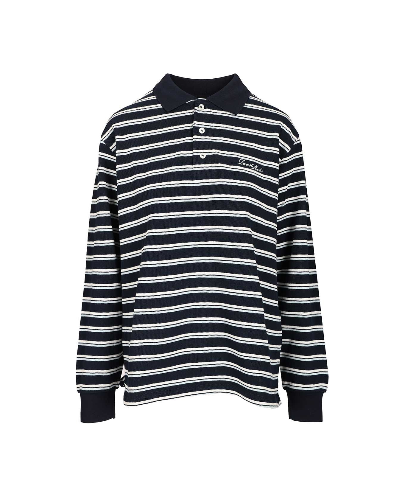 Dunst striped cotton polo shirt, long sleeves, with embroidered logo on the chest, ribbed collar and cuffs