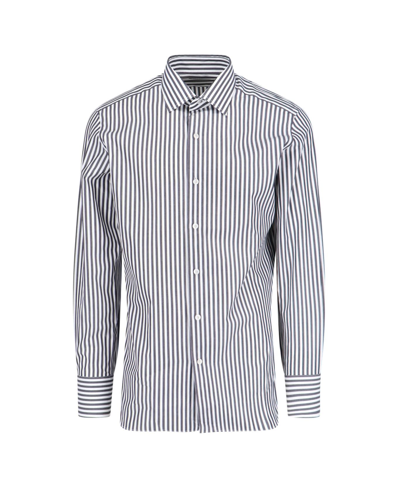 Tom Ford striped shirt in white cotton with grey stripe pattern, classic collar, button closure, button cuffs, straight hem. Composition: 100% Cotton