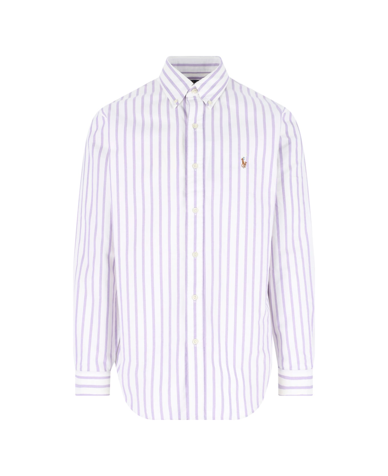- Striped shirt by Polo Ralph Lauren in white and purple cotton - Classic collar - Button closure - Front logo embroidery - Cuff buttons
