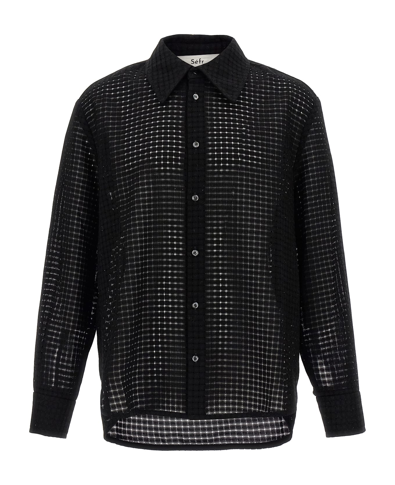 'Wes' Italian cotton shirt woven like a basket, front button closure, long cuffed sleeves.