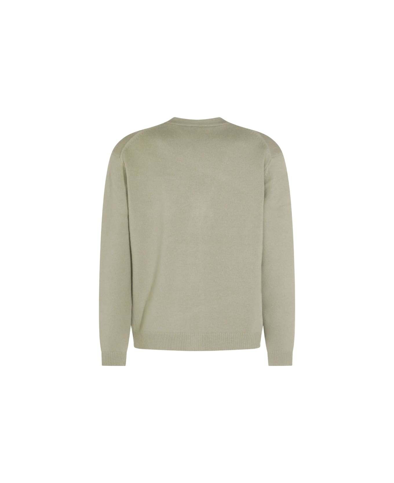 sage green signature fox motif V-neck button fastening long sleeves ribbed trim wool