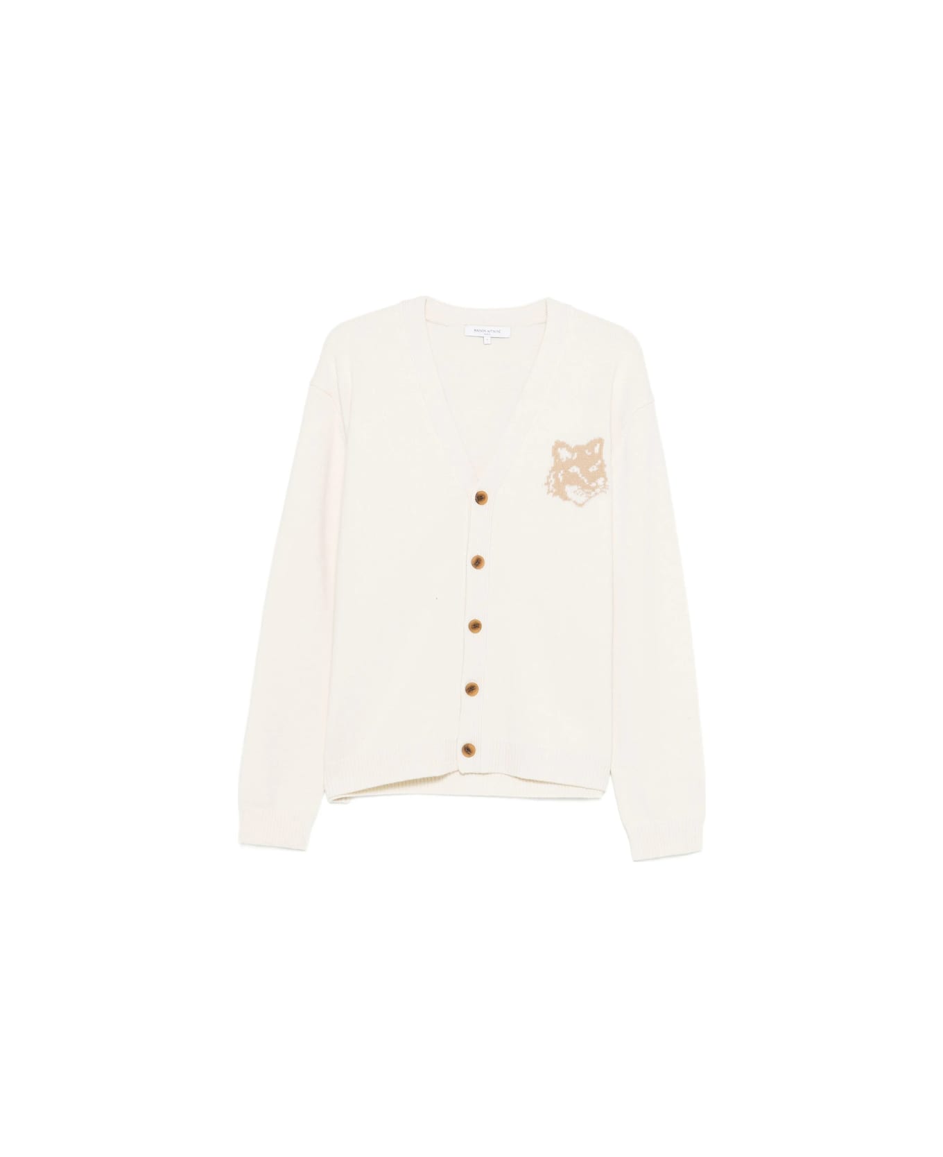 beige V-neck front button fastening long sleeves signature Fox Head motif