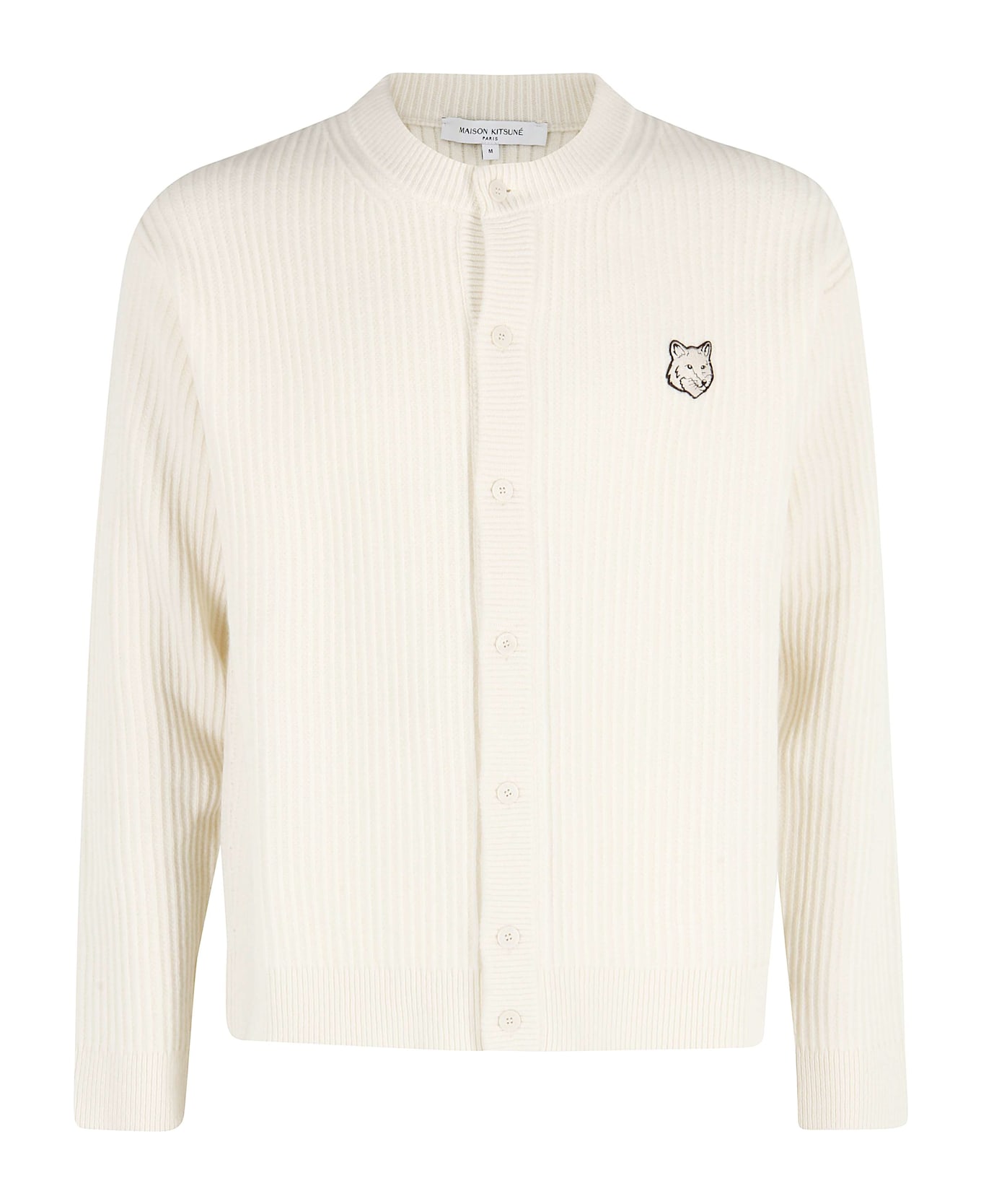 Fox Head cardigan -Maison Kitsuné -Color ecru -Korean neckline -Center button closure -Long sleeve -Logo on chest