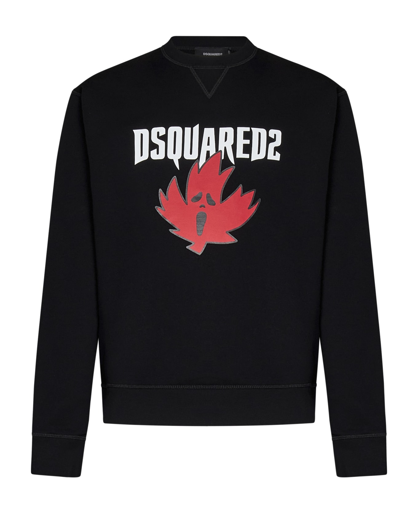 Composition: Ribbed Crewneck; Long Sleeves Horror Maple Leaf Graphic Print With White Logo Lettering At Front Ribbed Cuffs And Bottom Band Regular Fit Black Color , 100% Cotton Made In Italy