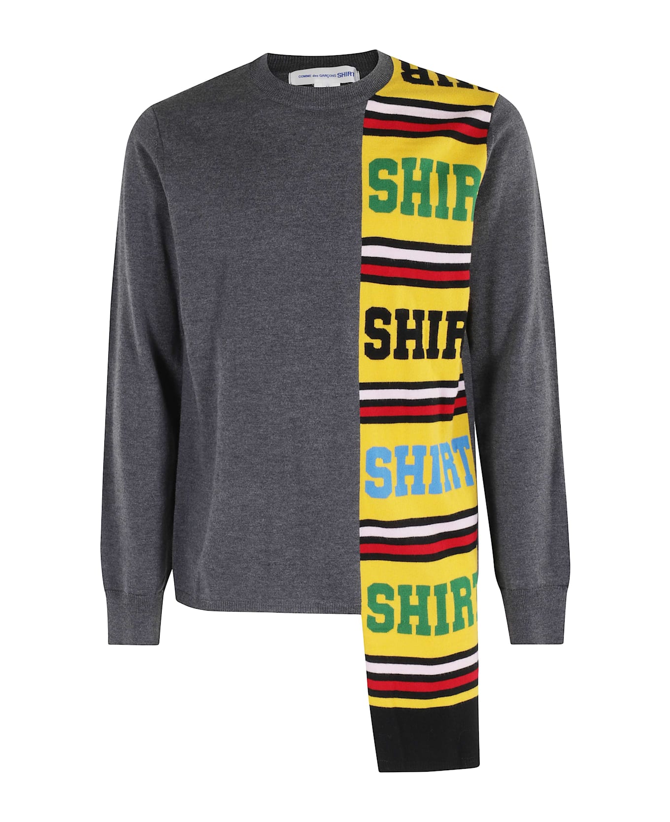 T-shirt -Comme Des Garcons Shirt -Grey color -Long sleeve -Circle neck -Asymmetrical -Logo