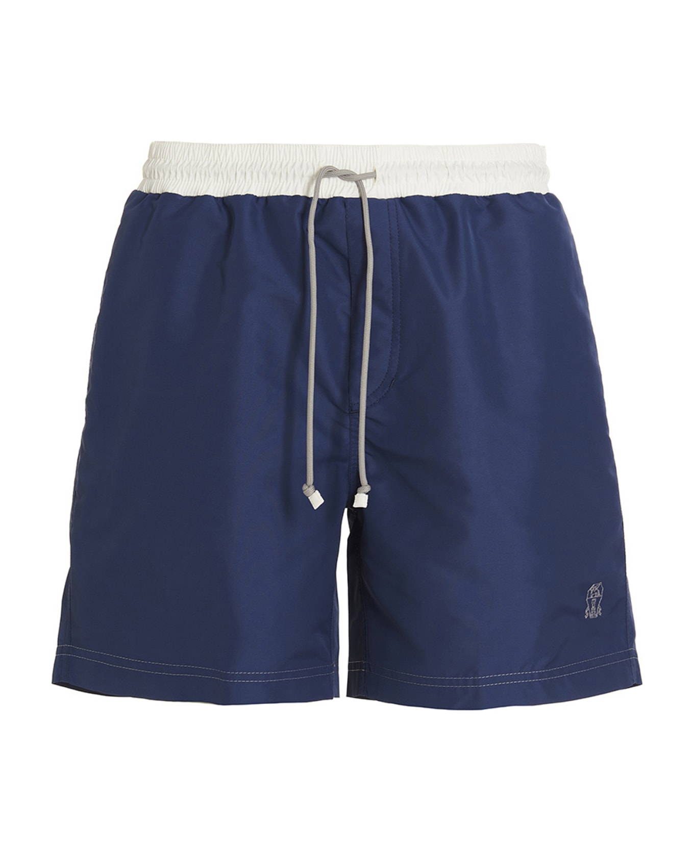 Nylon swimming trunks with logo embroidery, n elastic and a drawstring at the waist, pockets and inner mesh briefs. Composition: