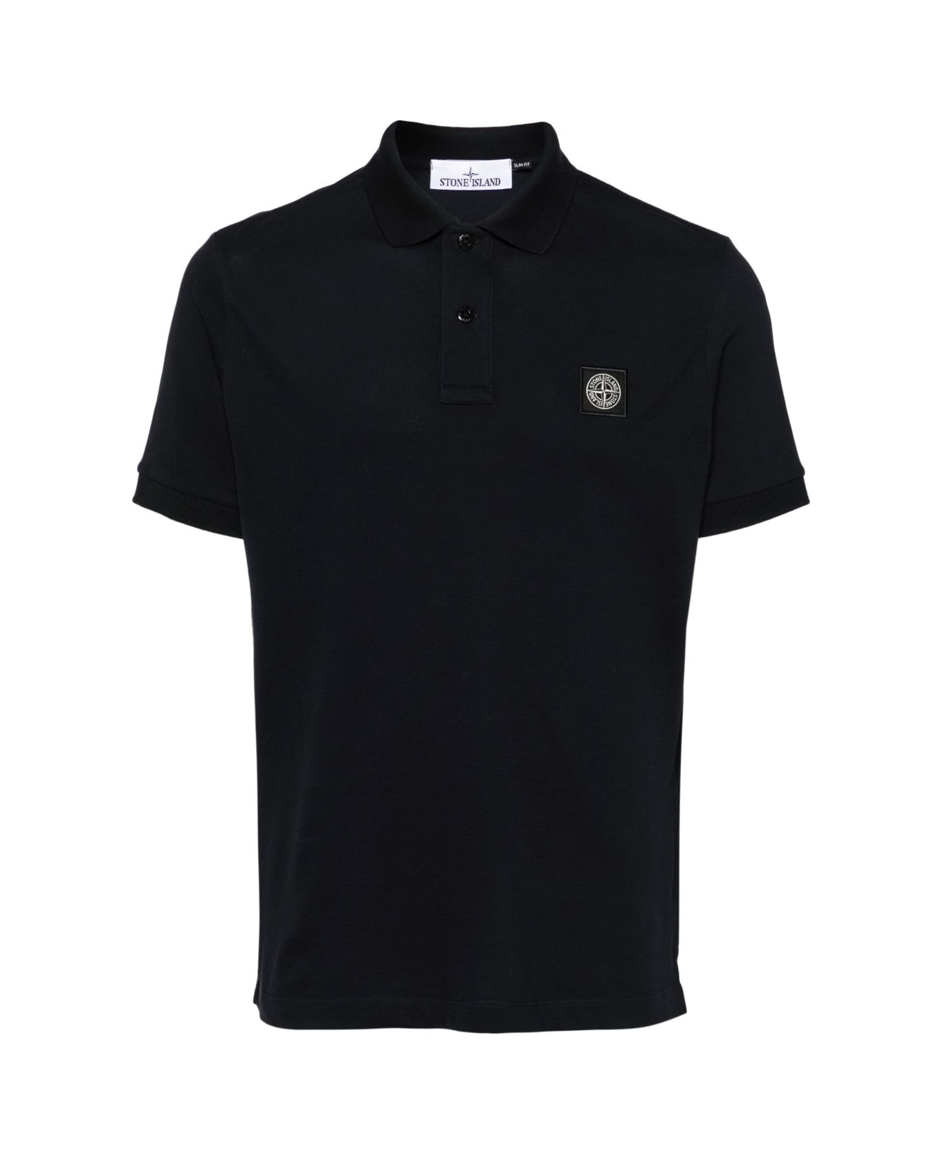 navy blue cotton blend signature Compass motif logo patch at the chest polo collar front button placket short sleeves with ribbed cuffs short side slits straight hem Composition: 5% Elastan, 95% Cotone