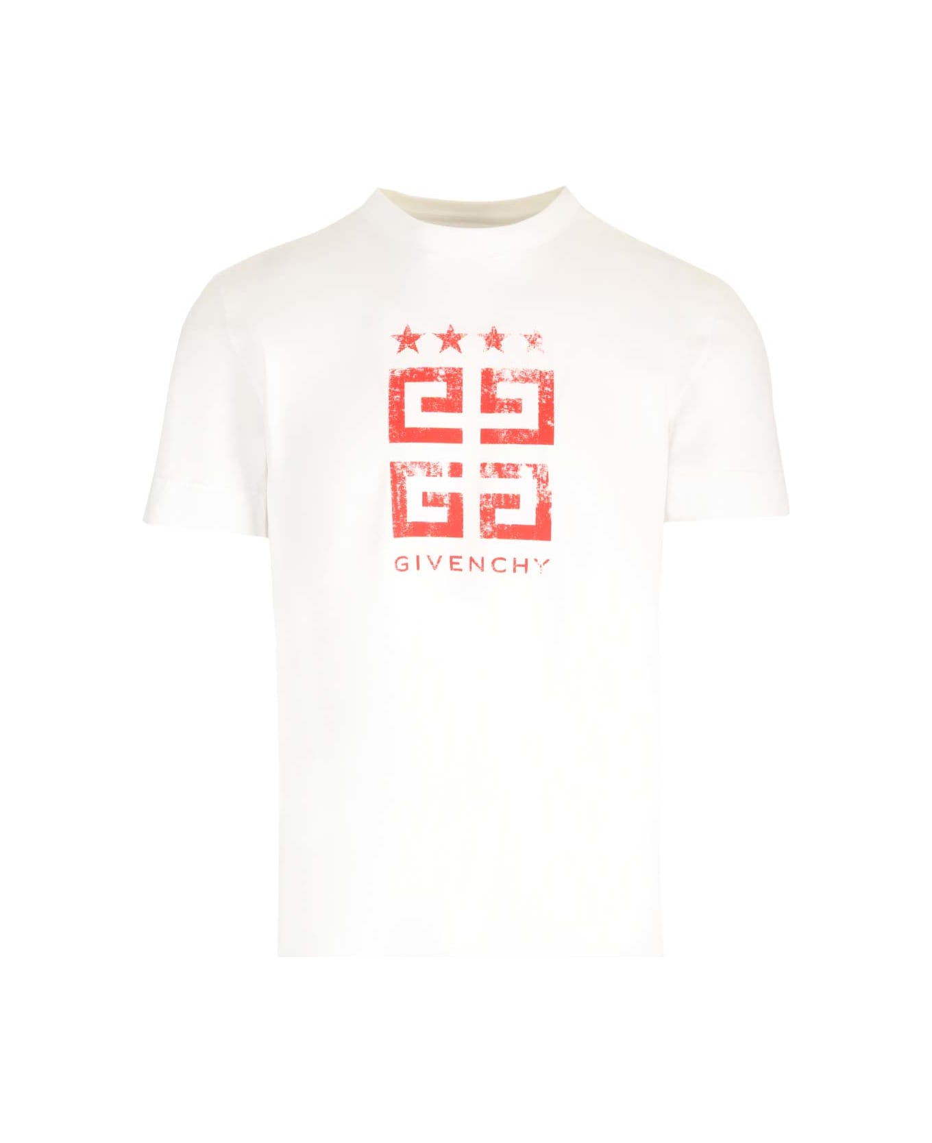 T-shirt girocollo in cotone lavato con stampa logo rosso effetto usato Composition: Main Material : 100 % COTTON Composition: 100% Cotton