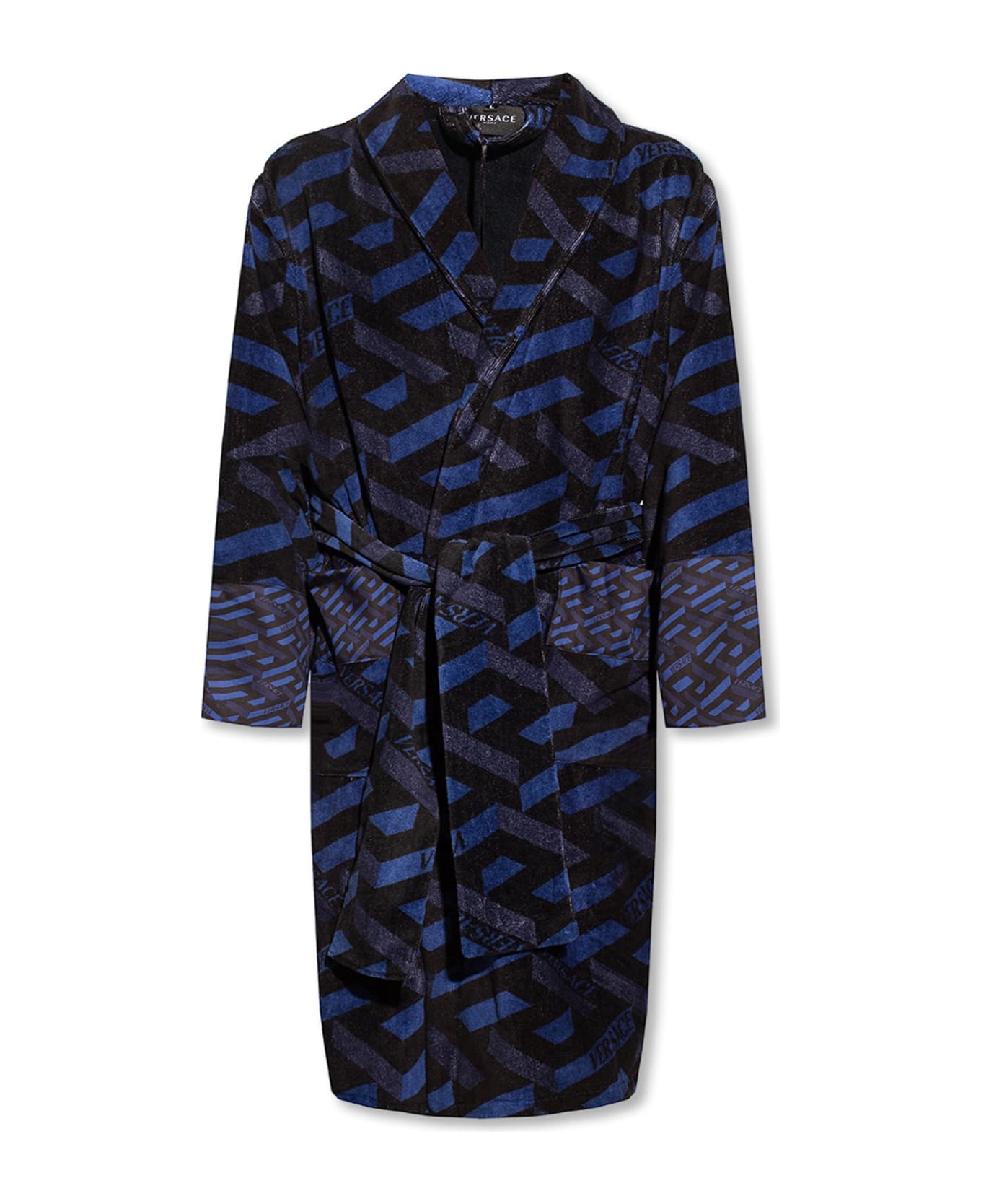- Composition: 100% cotton - all-over logo pattern - waist-cinching belt - two slip pockets - long sleeves - machine wash