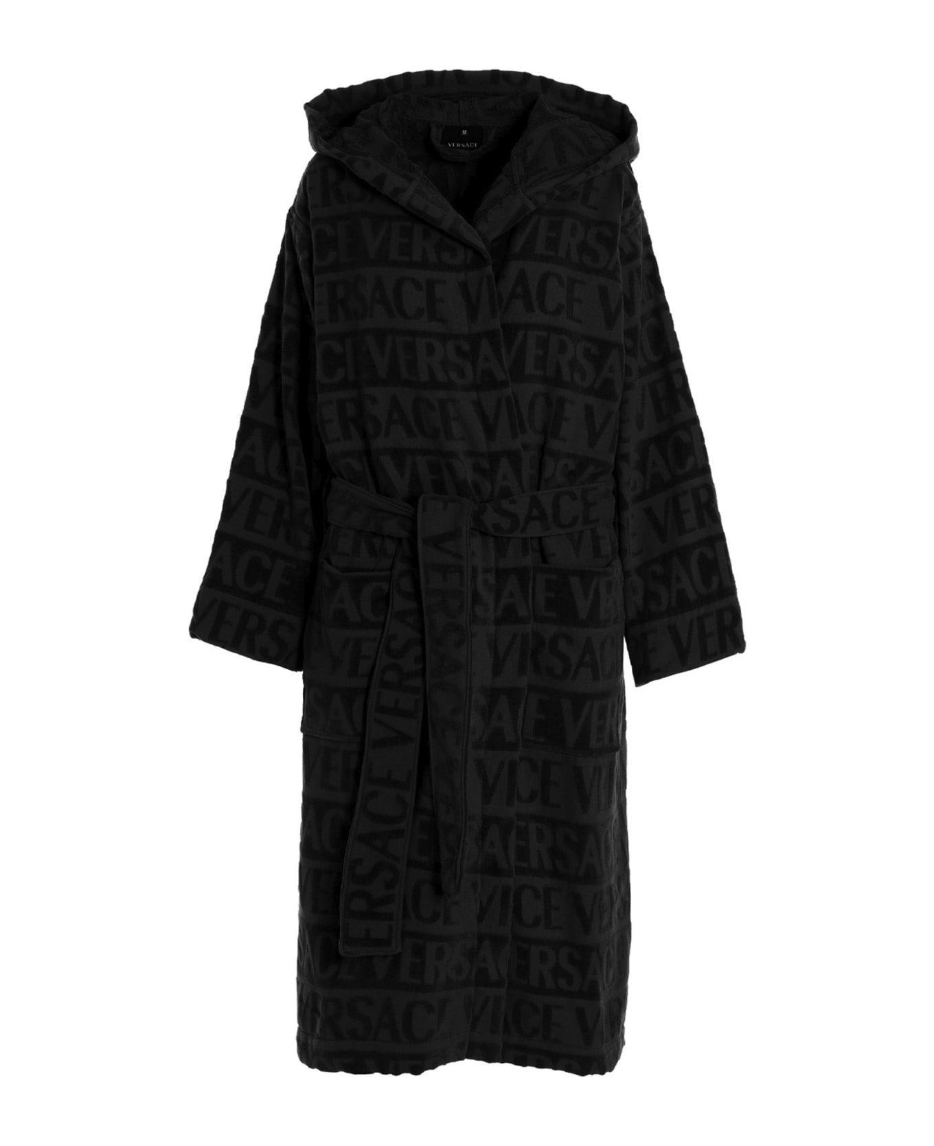 Cotton terry cloth bathrobe with all-over logo, sequin applications on the hood, belted closure at the waist, pockets and long sleeves. Composition: