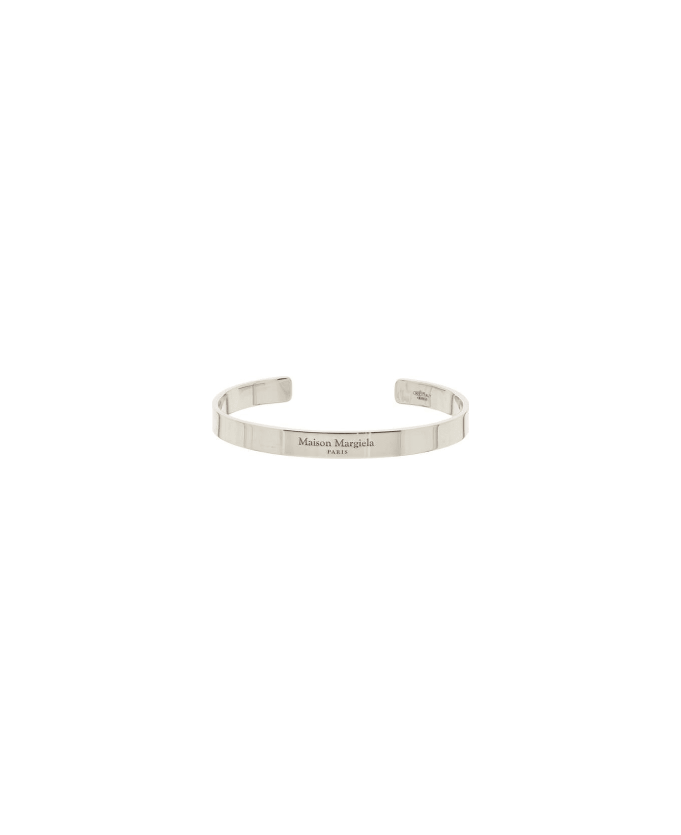 Maison Margiela silver rigid bracelet with engraved lettering logo. The item in photo is size M. Composition: 100% AG