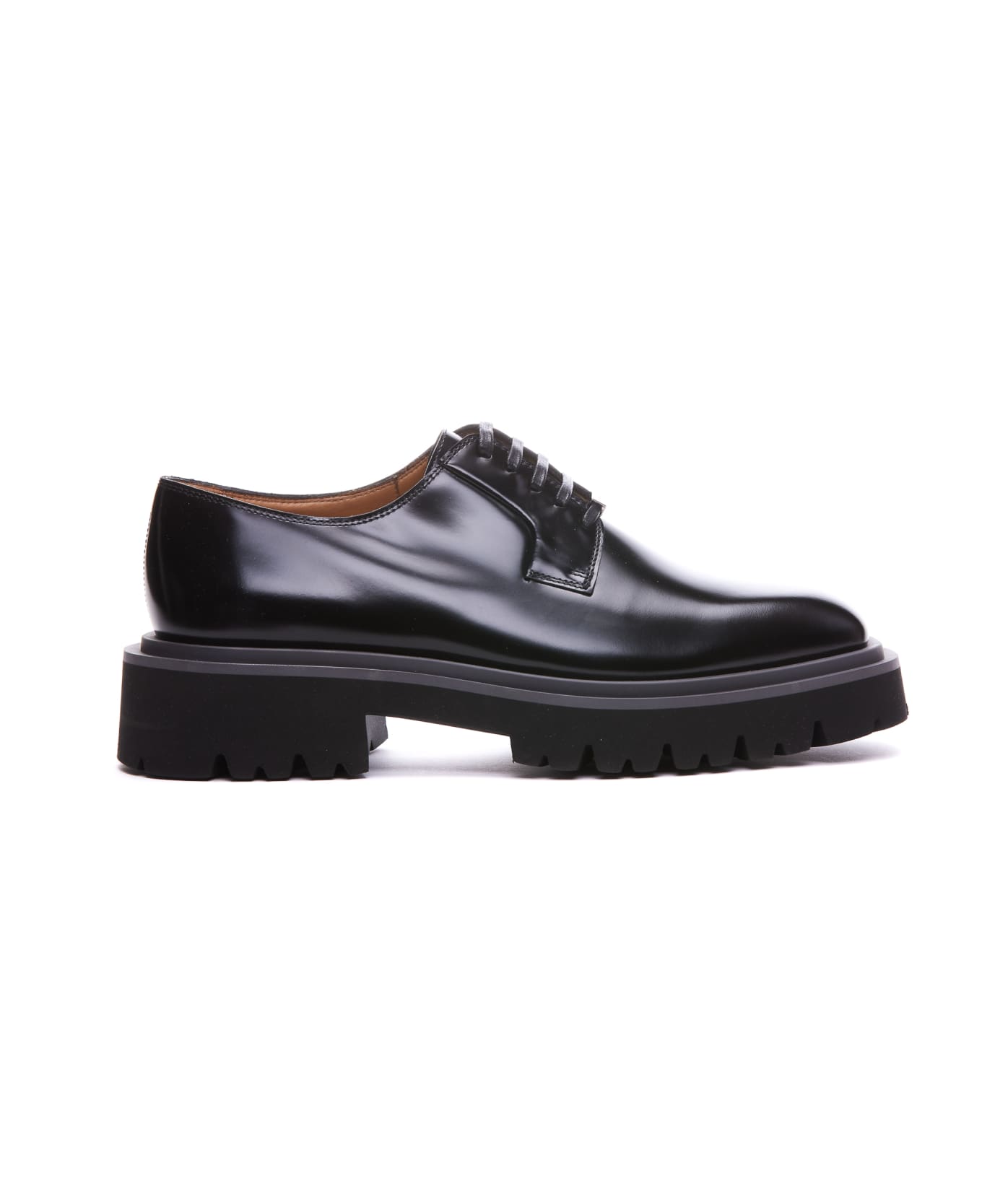 Salvatore Ferragamo black Flicker lace up shoes, round toe, leather upper and rubber sole, patent effect Composition: 100% Patent Leather / Rubber Sole