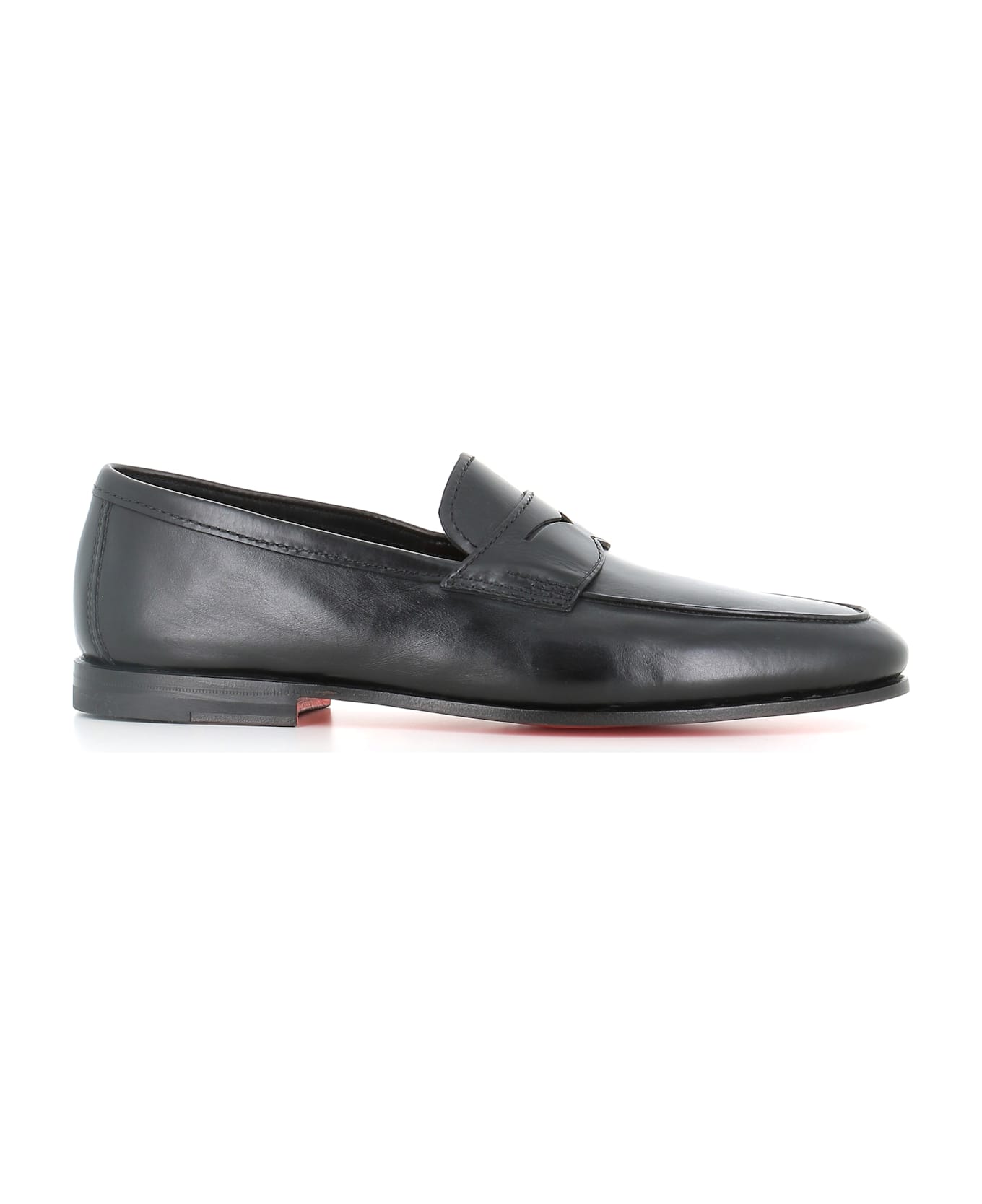 Black leather men loafer by Santoni, featuring by a 'Goodyear' artisan manufacturing. Flexible leather sole. Unlined interior. Heel: 2,5 cm