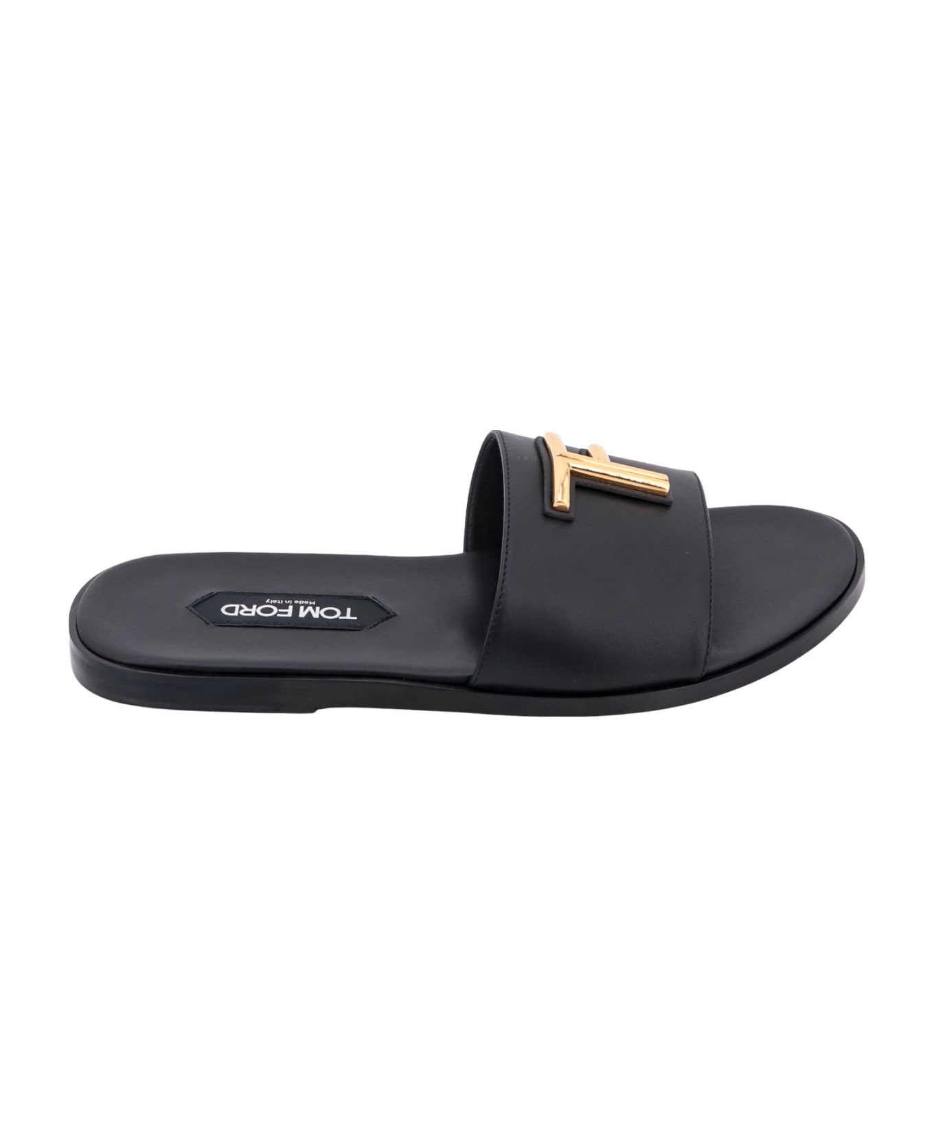 Leather sandals - Frontal Metal Monogram - Rounded Toe - Leather Sole - Made In Italy - Leather - External : Leather