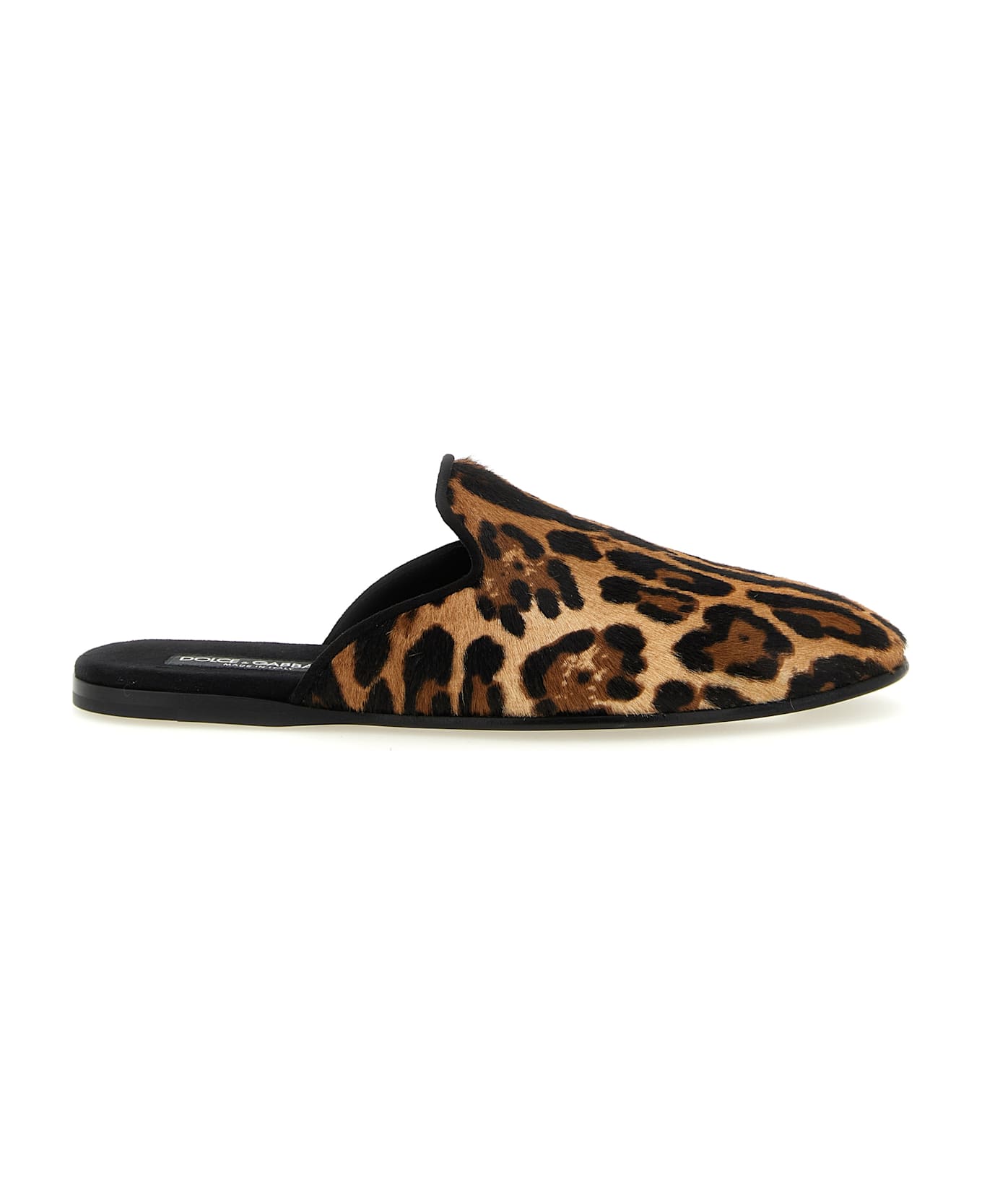 Leo print Pony-effect leather 'Young Pope' slipper with Texon insole, leather sole and TPU underheel. The differences in print placement you might find on this product is a characteristic of Dolce&Gabbana's Handmade products. A peculiarity that makes each garment or accessory unique and exclusive. Composition: 83% calfskin leather 17% goat leather