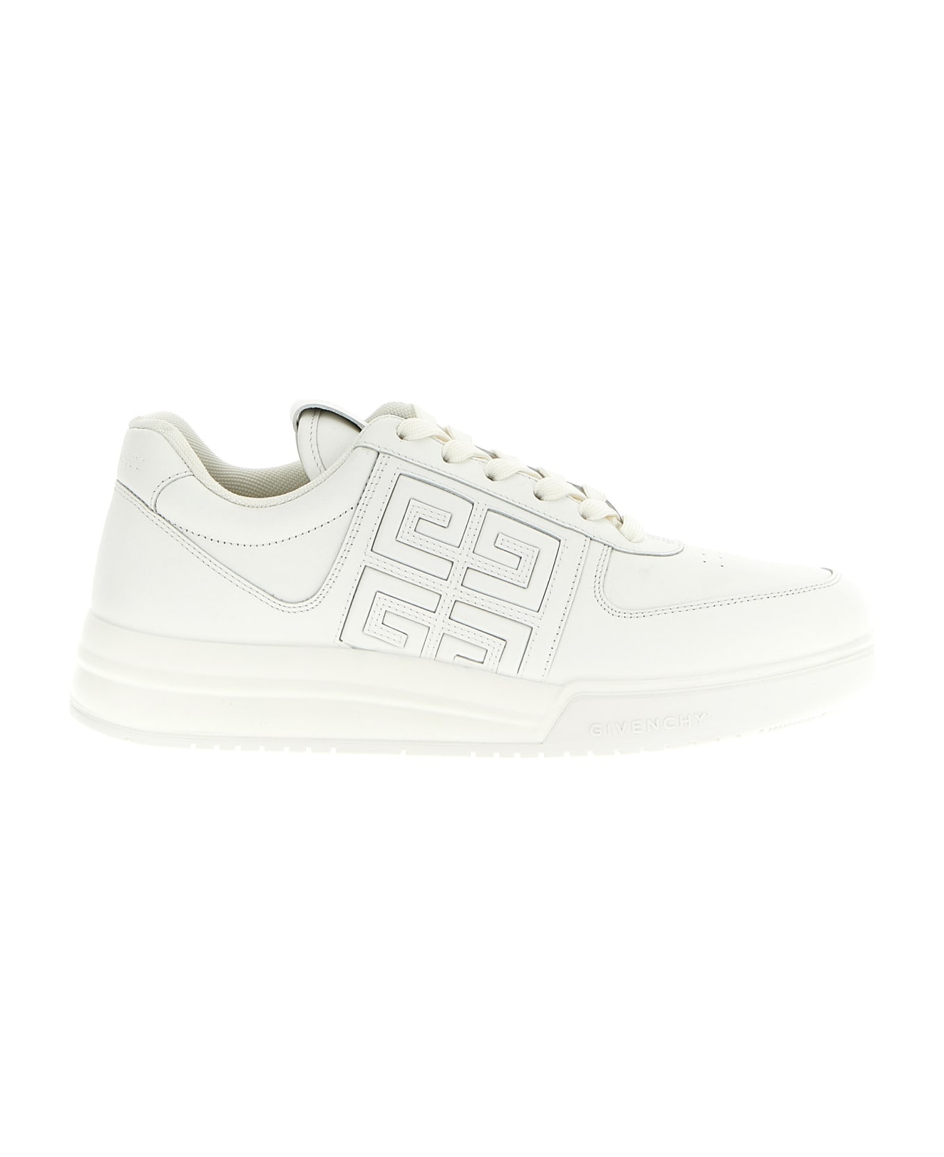 4G' leather low-top, lace-up sneakers with rubber sole.